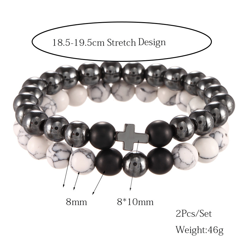 White-barked Pine Black Iron Bracelet Cross Elastic Two-piece Set