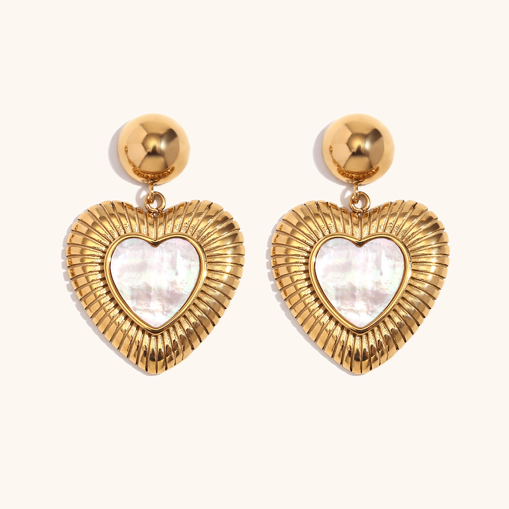 Product information:Treatment Process: Electroplating Color: Shell light peach heart pendant earrings-Gold Applicable population: Female Material: Stainless steel Shape: heart shape