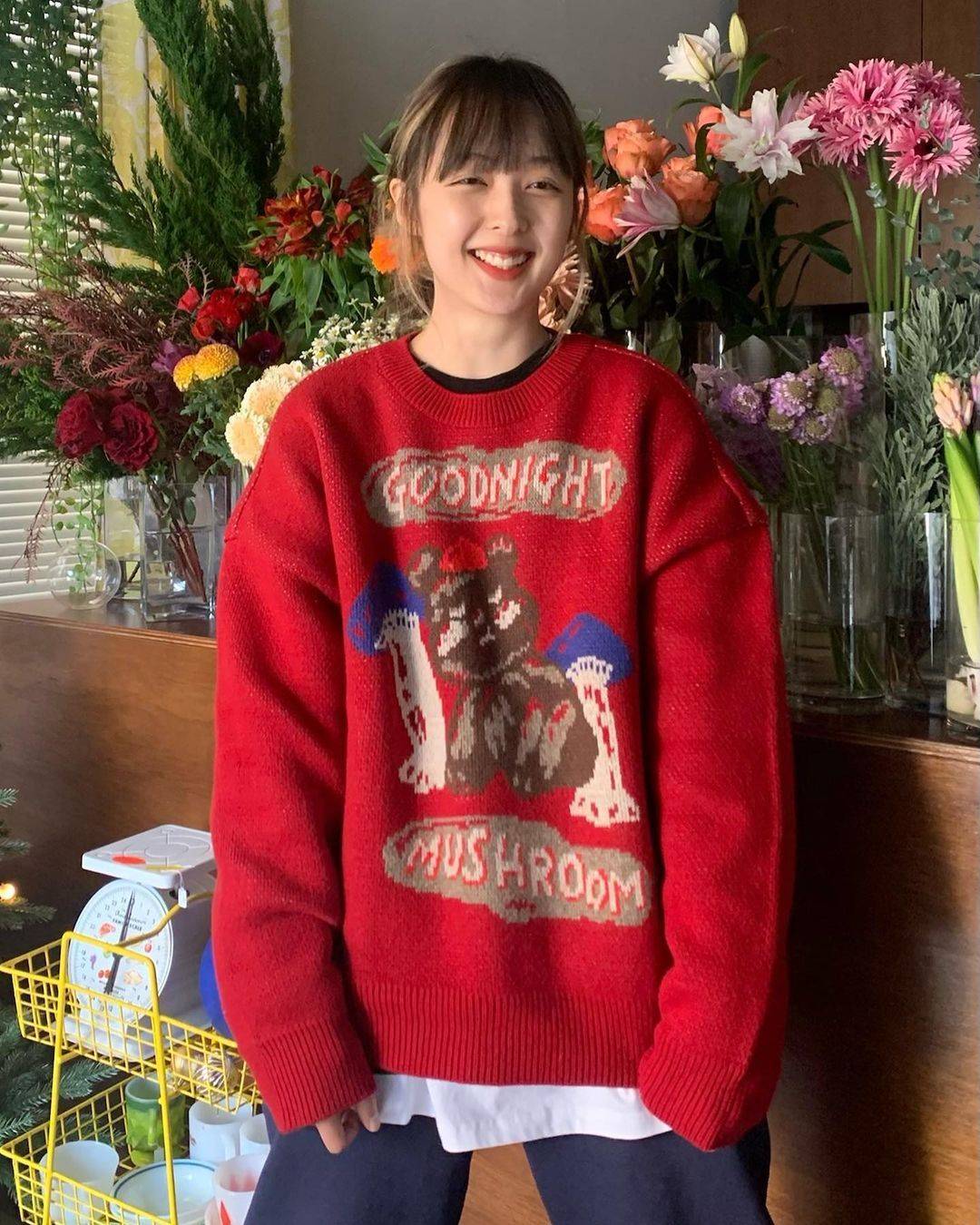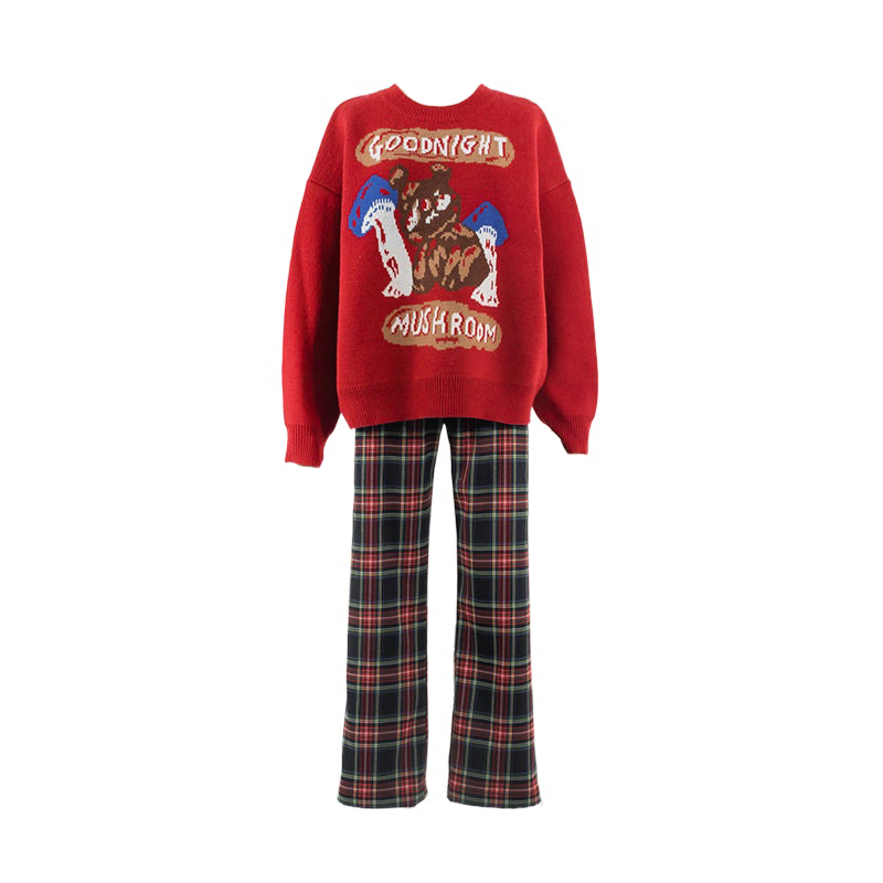 Color classification: Red sweater, plaid pants