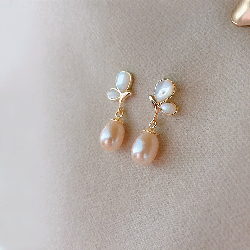 Feminine Simple Oval Column Earrings With Hanging Wings
