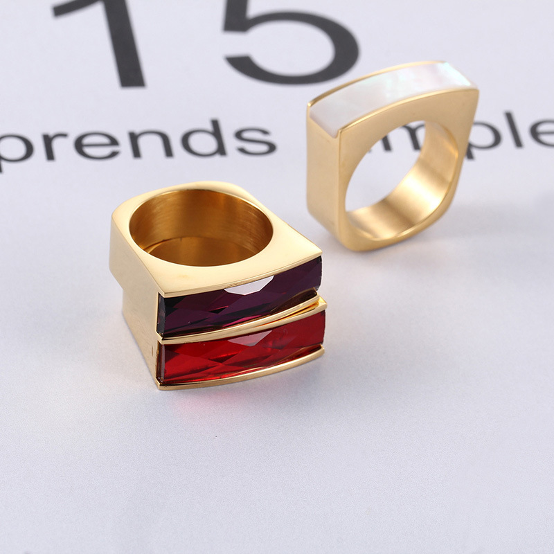 European and American stainless steel gold ring men and women rectangular six color glass ring