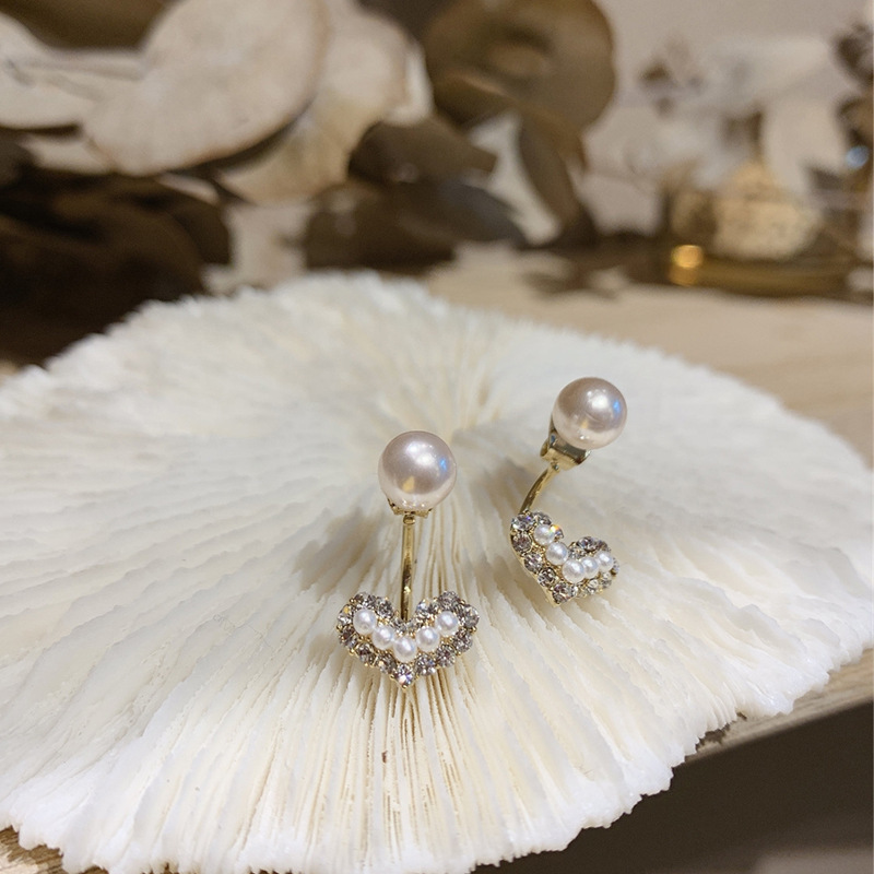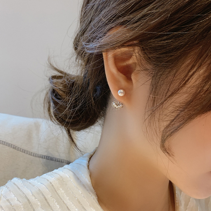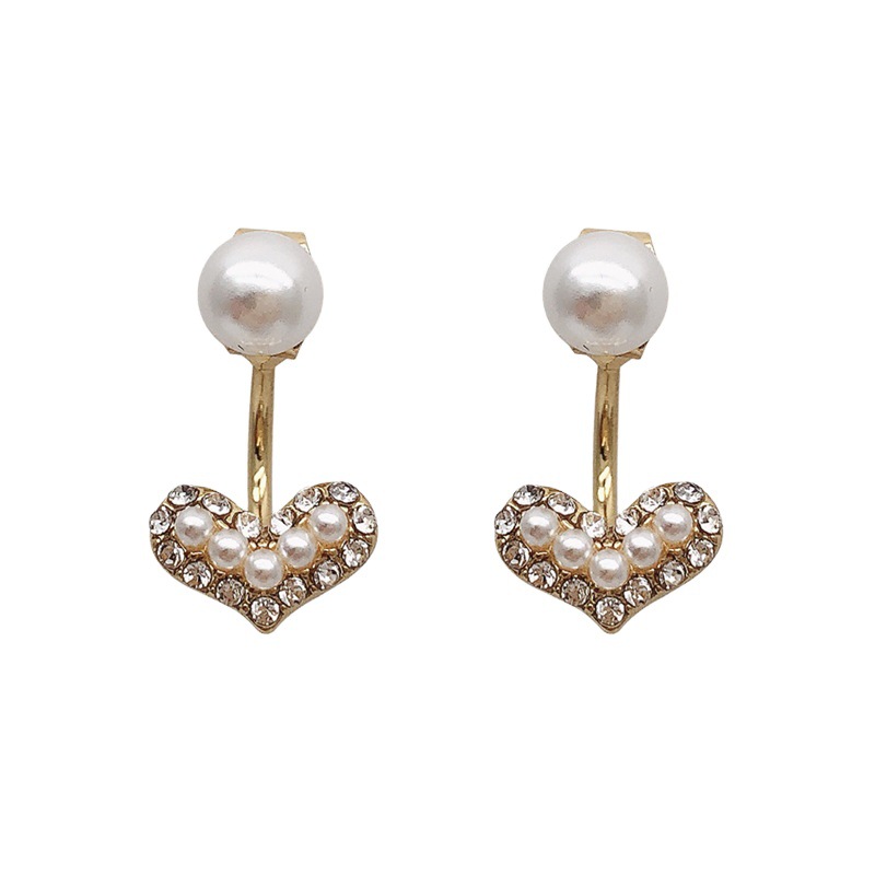 925 Silver Needle Rhinestone Love Pearl Stud Earrings