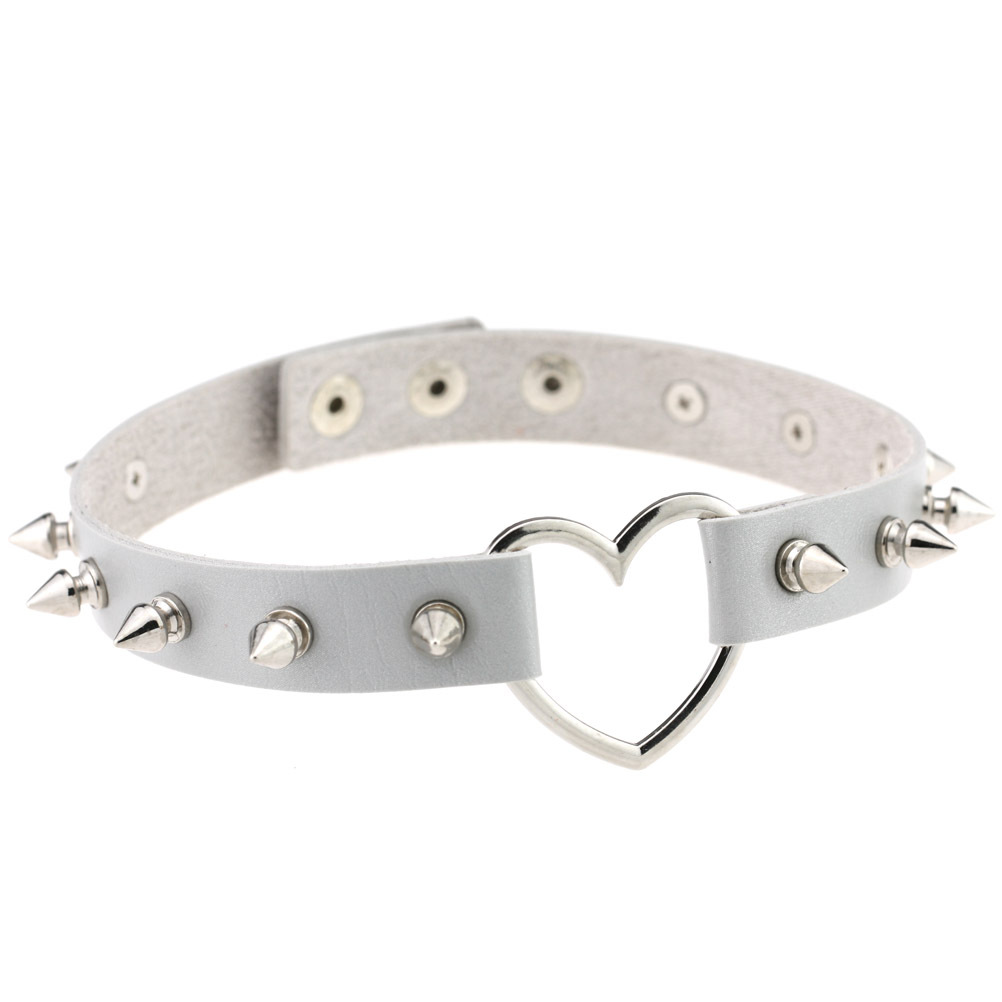 Pointed studs, peach-shaped heart-shaped PU leather necklace, collar, neckband