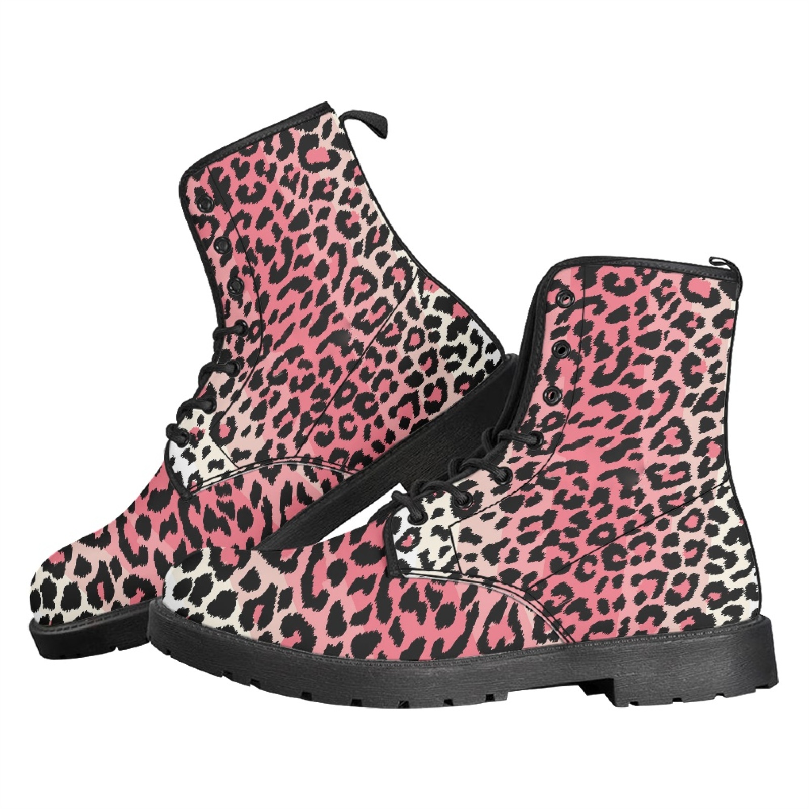 Printed Women's Leather Flat Bottom Low Heel British Martin Boots