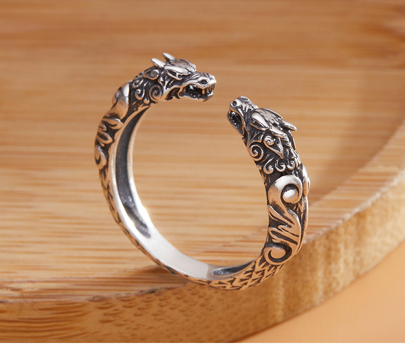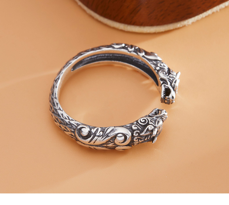 Product information:Type: Ring, ring Color: TJ-1450 double dragon ring Size: adjustable opening Style: Unisex Material: Copper Modeling: animal/Zodiac Popular elements: Dragon Style: Retro Specification: Face width 5mm thickness about 3mm