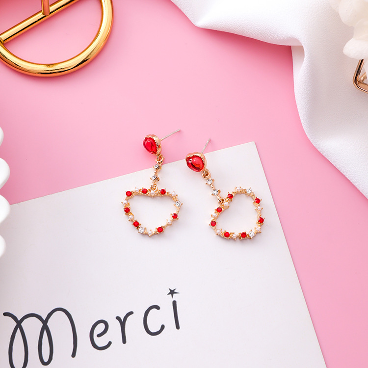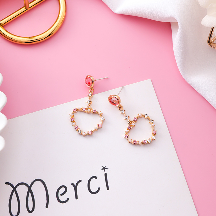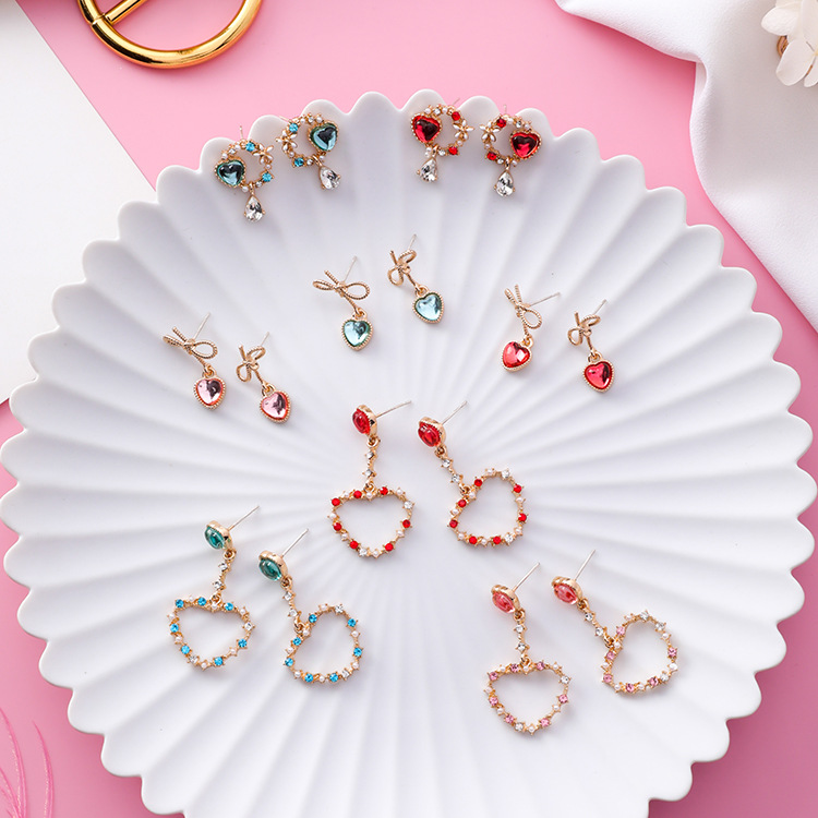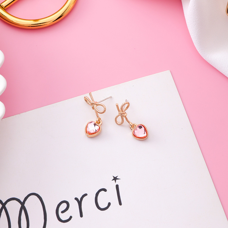 925 Silver Needle Love Bow Earrings Sweet Garland Diamond Drop Earrings