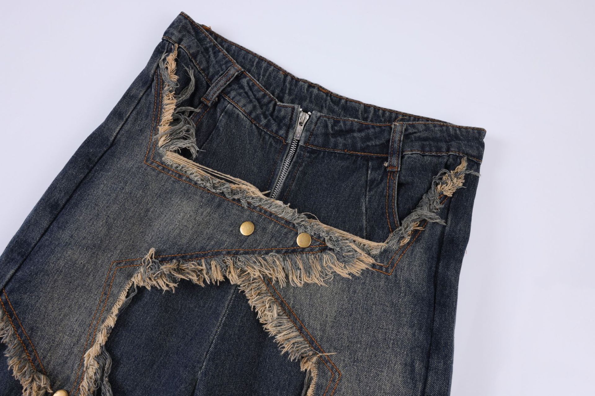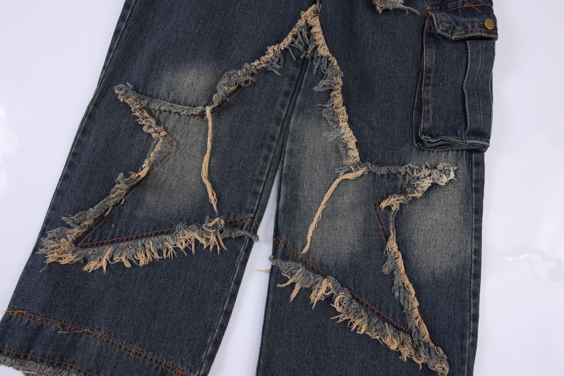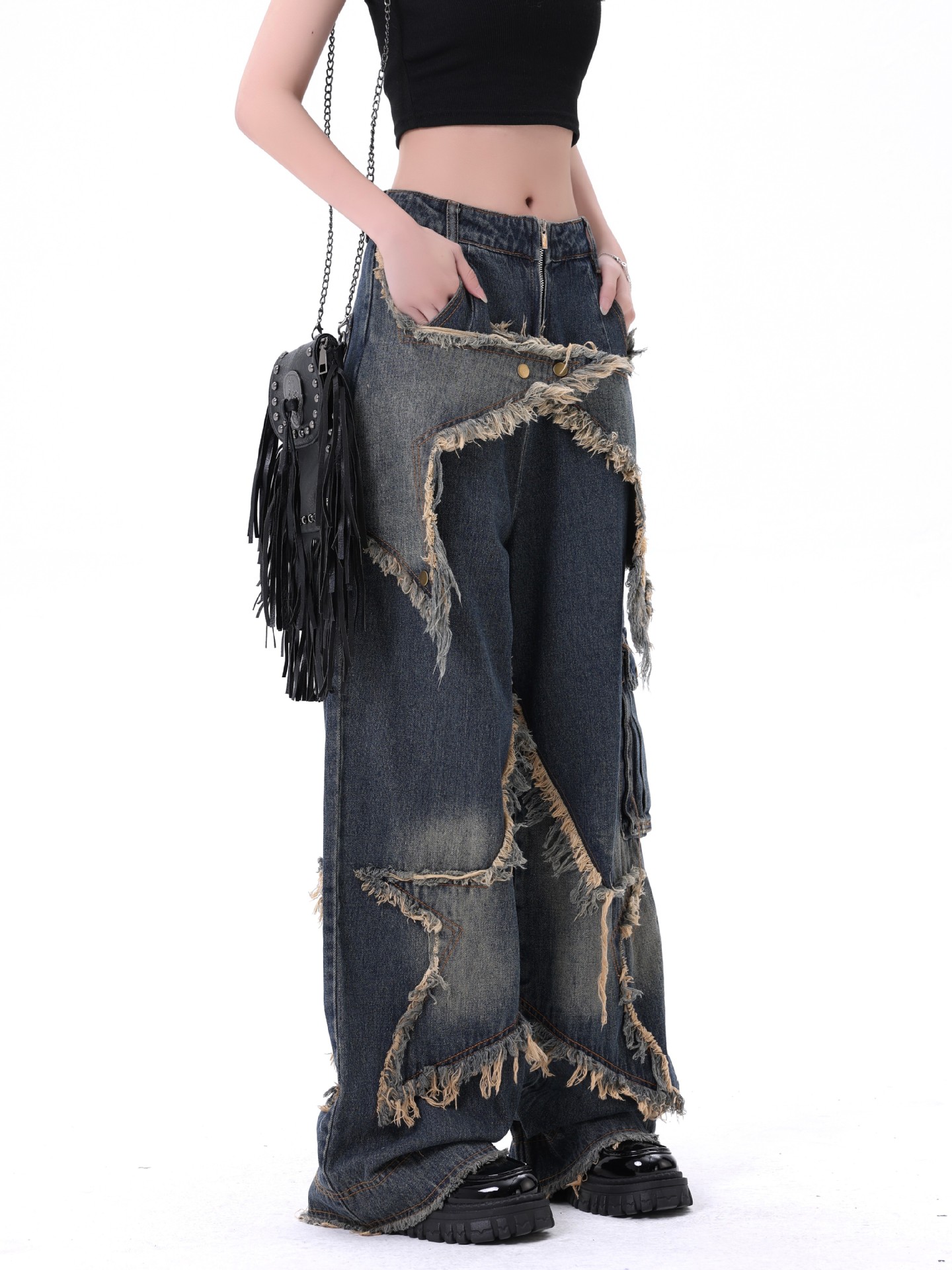 Product information: Fabric name: denim Color: blue Main fabric composition: Cotton Pants length: trousers Size: S,M,L,XL,XXL Style type: Street hipster Pants type: straight-leg pants Style: Cowboy Style