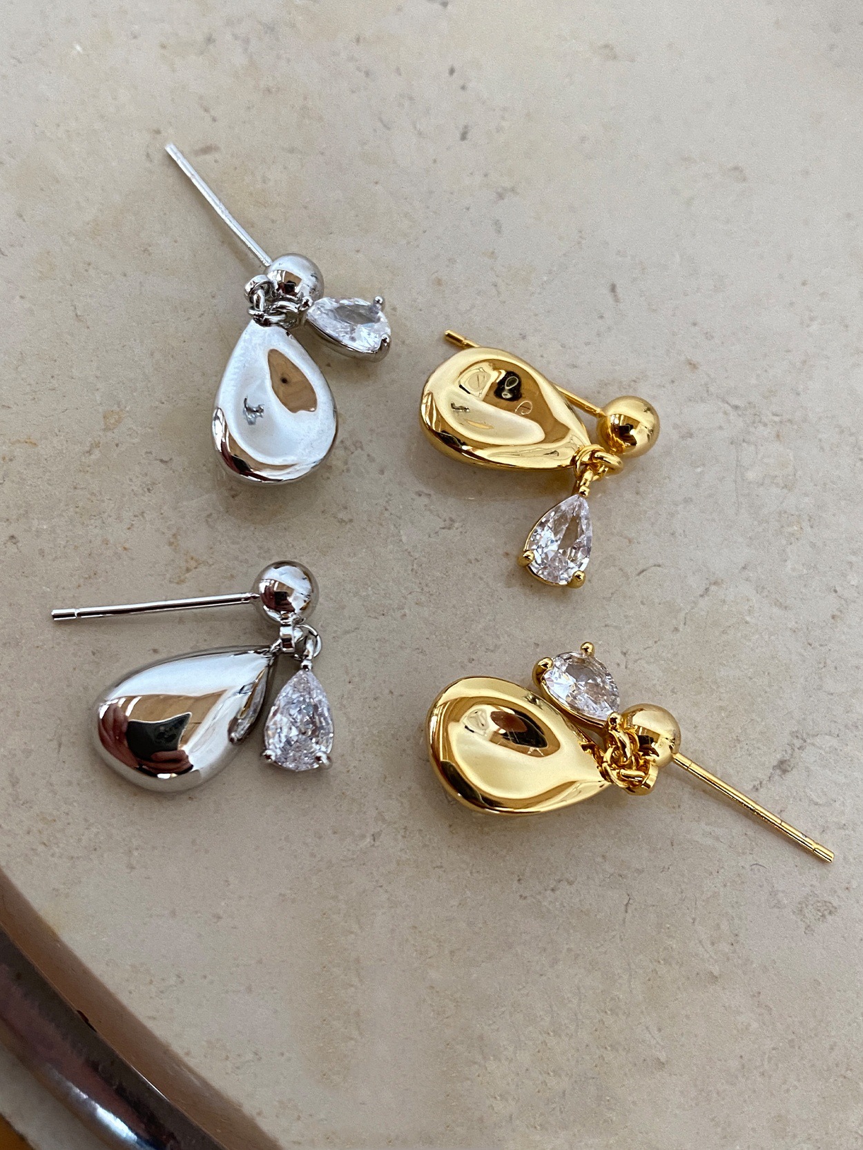 Product information:Treatment Process: Electroplating Color: water drop ear studs Gold, water drop ear studs Silver Applicable population: Female Material: Copper Shape: U-shaped, geometric