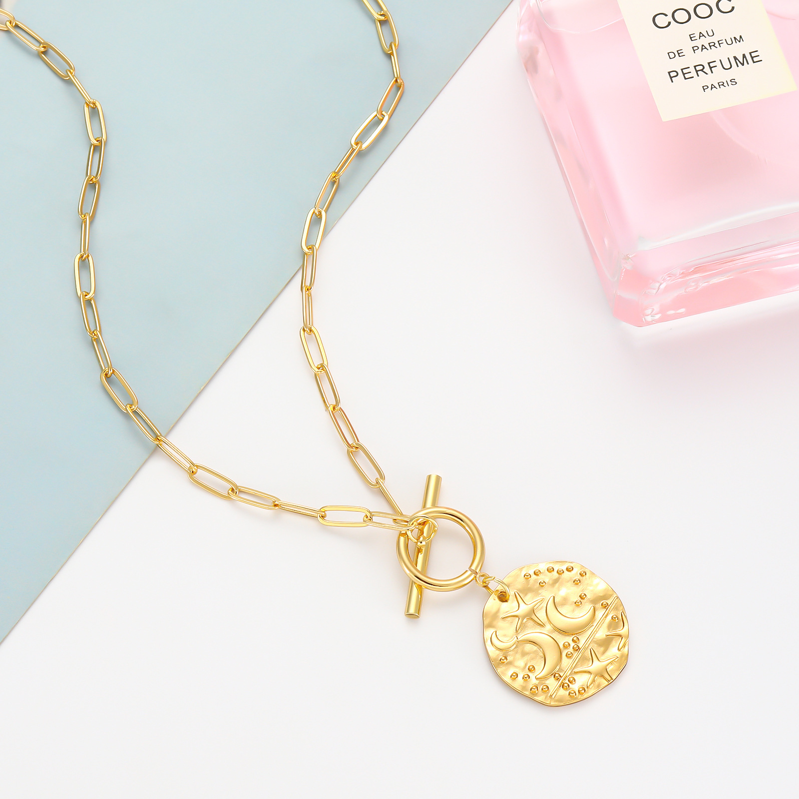 Amazon hot sale medallion moon and star pendant charm minimalist feminine necklace jewelry