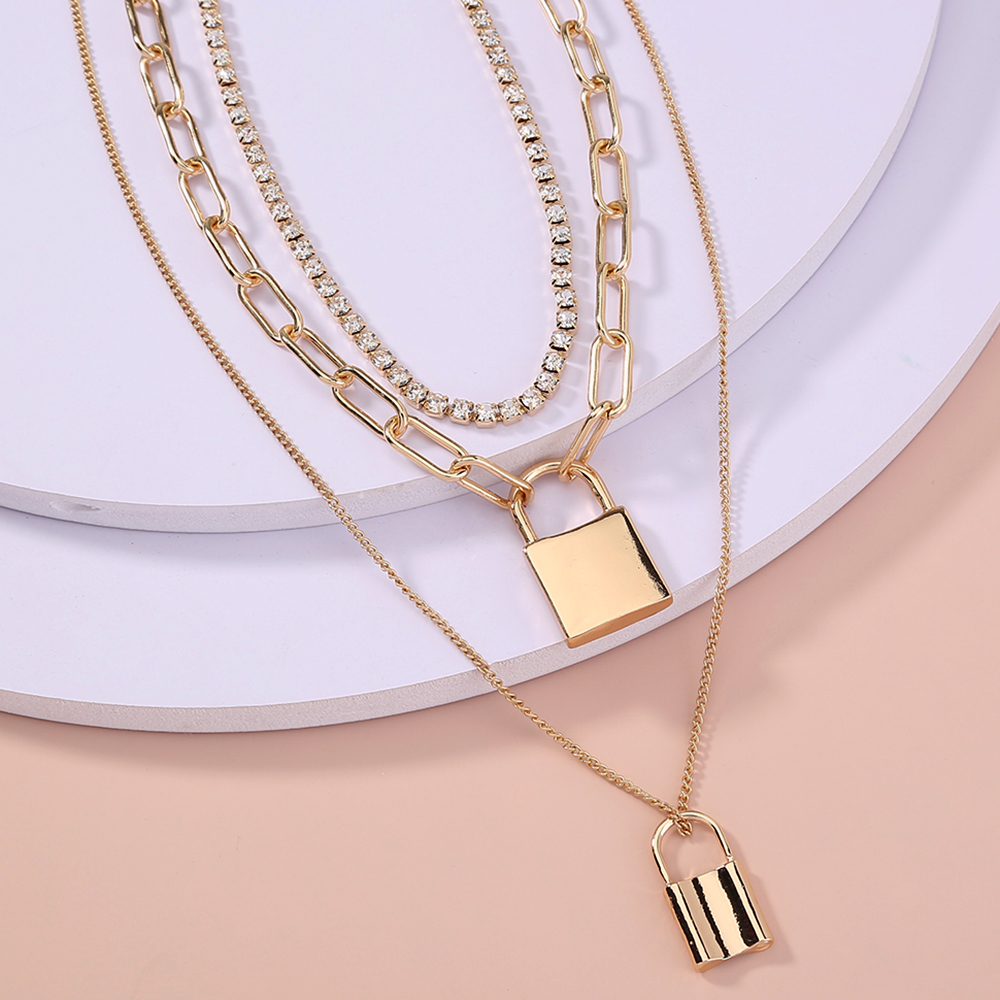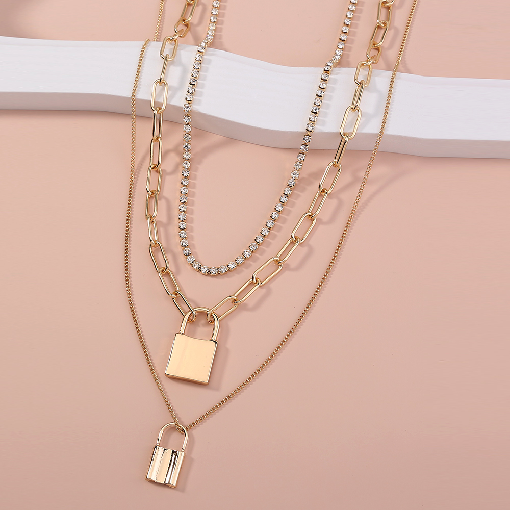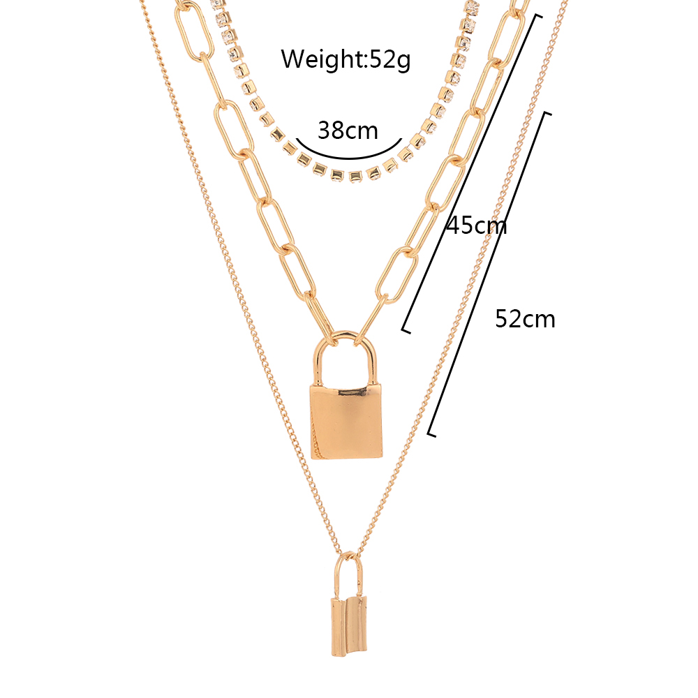 Retro Chain multi-layer Gold Chain Necklace woman, Diamond Claw Chain Fashion Street photo lock-shaped necklace