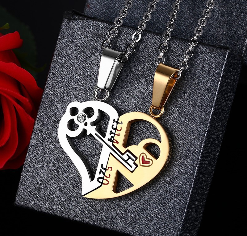 Titanium Steel Puzzle Heart-Shaped Couple Pendant Necklace Korean Style Necklace