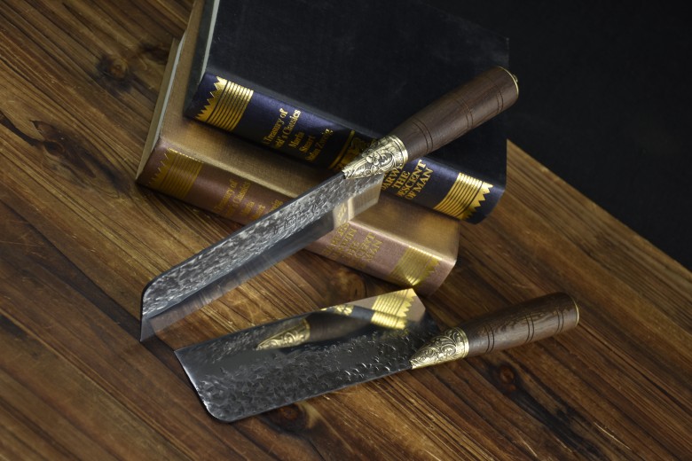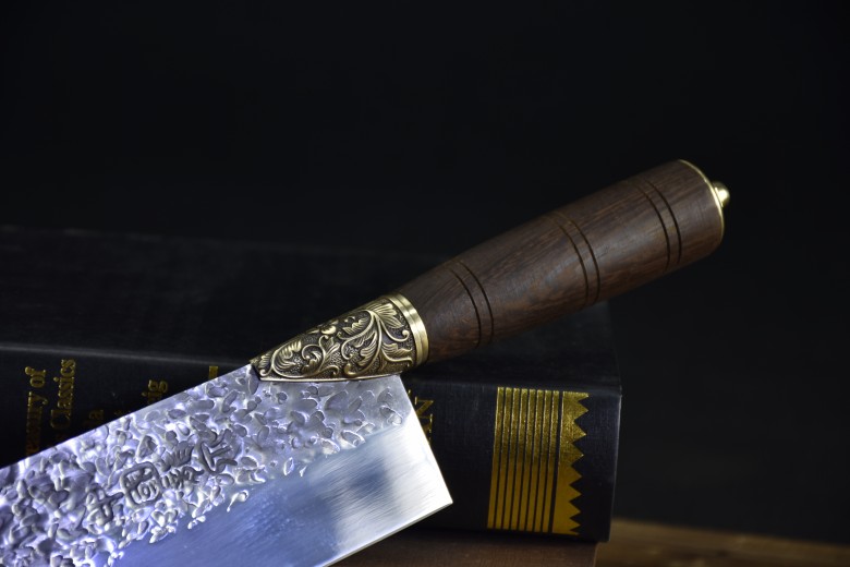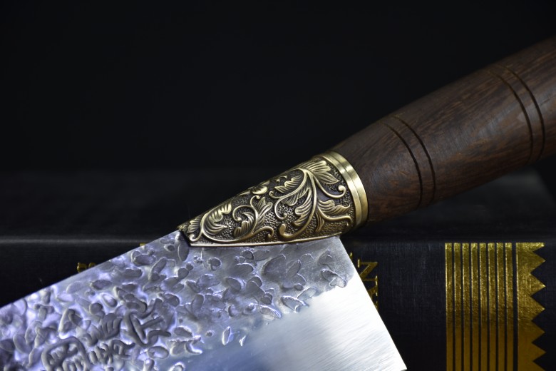 Full length: 31cm Blade length: 19cmHandle length: 11cm Blade width: 5.9cmThickness: 0.25cm Blade material: 7Cr17MovHandle material: rosewood, fittings: pure copperNet weight: 0.25kg