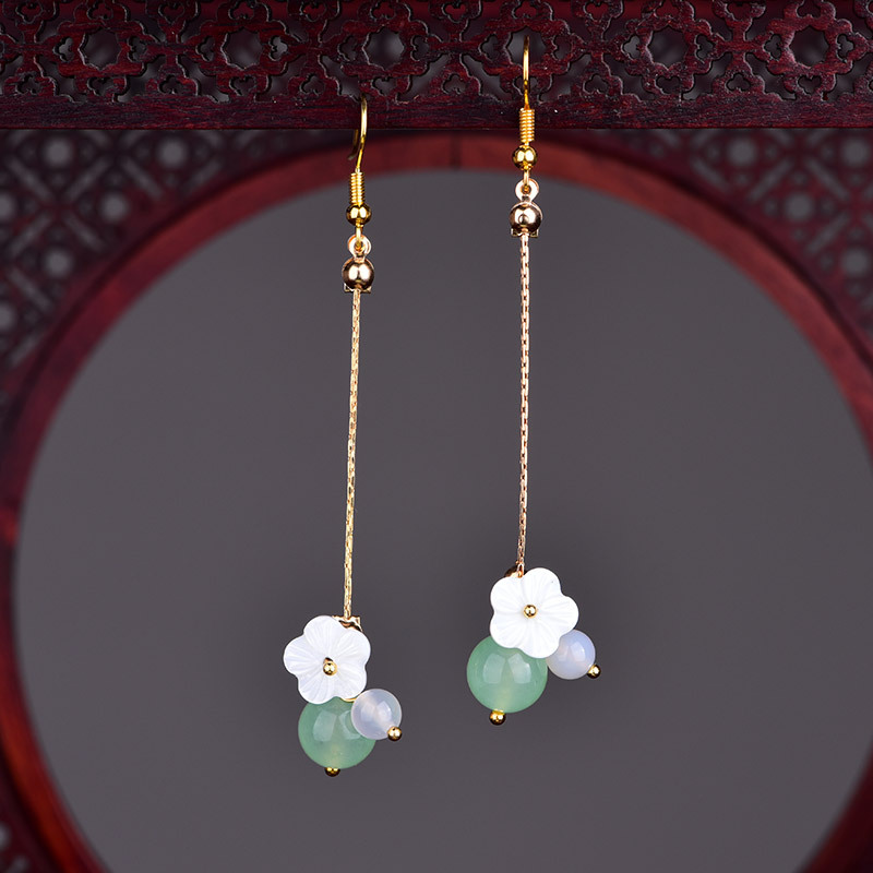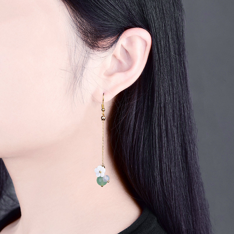 Product information:Material: Metal Style: men's, women's Shape: Flower Popular elements: Tassel Material: Shell, agate, cinnabar Jade, copper, etc. Size: Total length: about 9cm Size Information:12mm shell, 6mm agate, 10mm cinnabar Jade