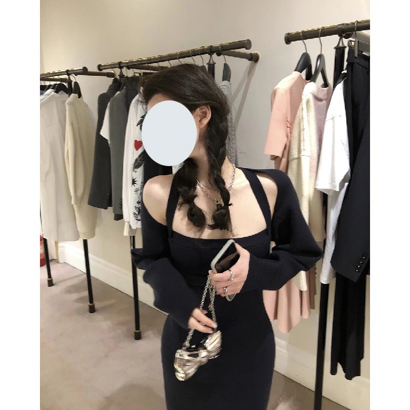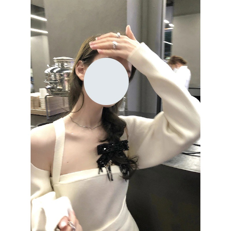 Color: white cardigan, navy blue cardigan, white dress, navy blue dress