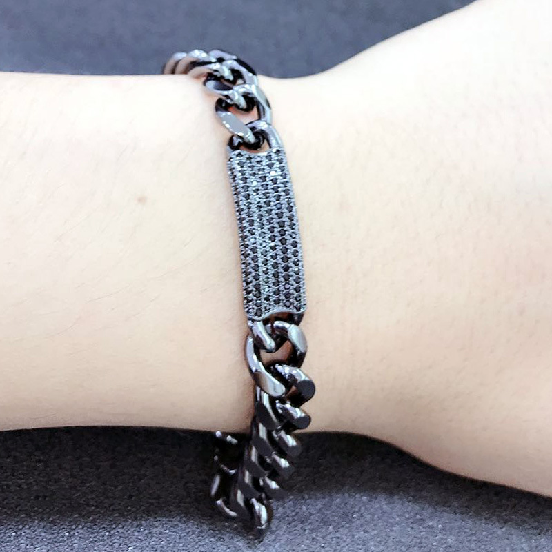 Style: Europe and AmericaMaterial : CopperTreatment process: electroplatingType : BraceletShape: geometricSetting material: Micro-set diamondsColor: black, silver, gold