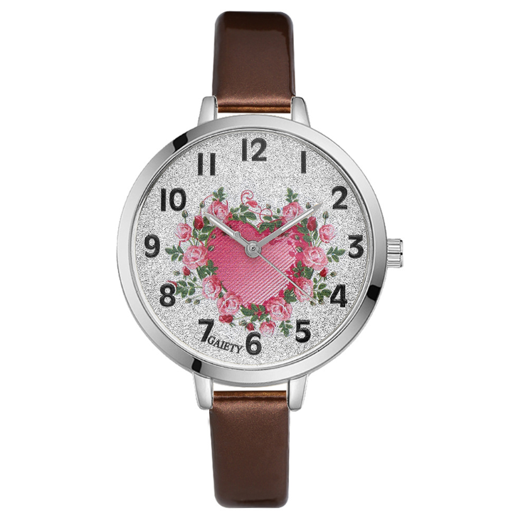 Display type pointer + number Applicable people general style leisure Waterproof not possible movement type quartz movement brand other Movement origin China Movement model s168 thickness 7mm Dial diameter 35mm Crown type Spiral crown Bottom type Normal Mirror material Other Buckle style Pin buckle Buckle material Stainless steel Strap material imitation leather dial shape round case material alloy Color white, red, purple, blue, black, rose, pink, sky blue, brown