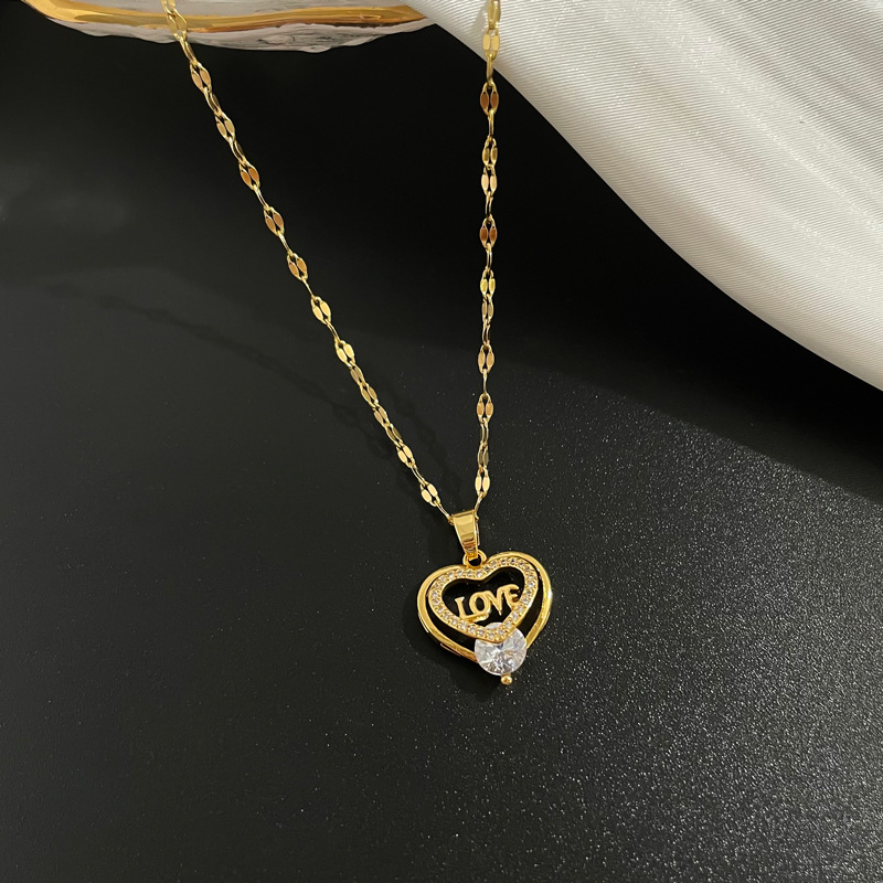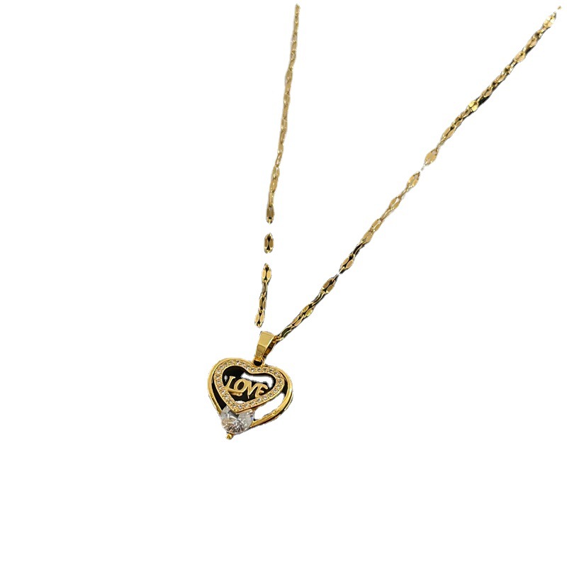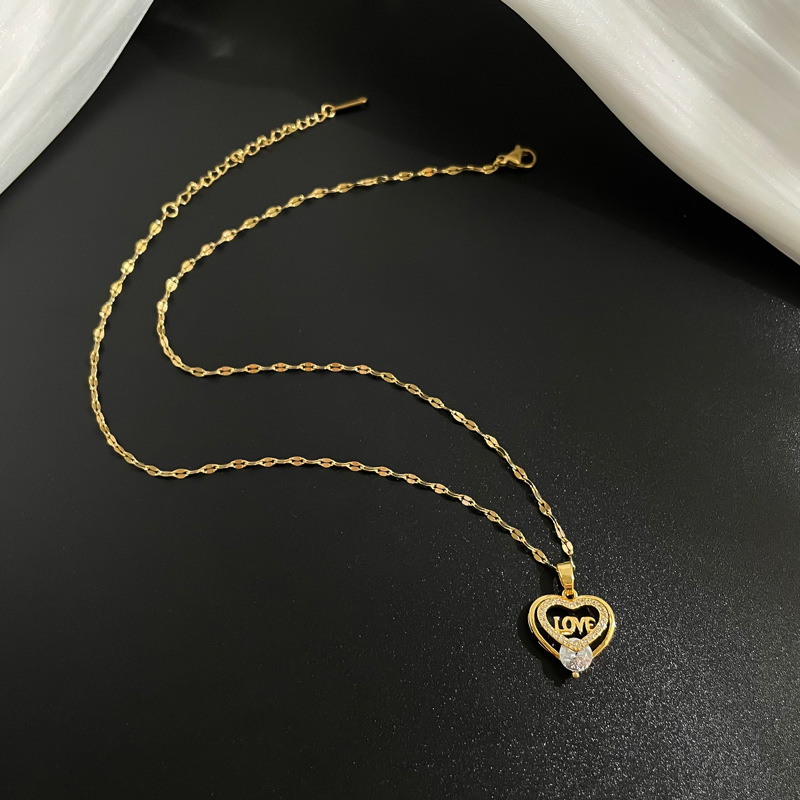Heart Shaped Clavicle Chain Japanese And Korean Fashion Minimalist Copper Micro Inlaid Necklace