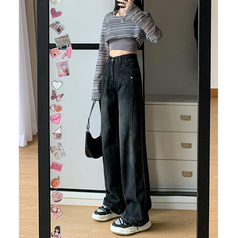 Washed Wide-leg Men And Women Autumn And Winter New Large Size Pear-shaped High Waist Slim Straight Trousers