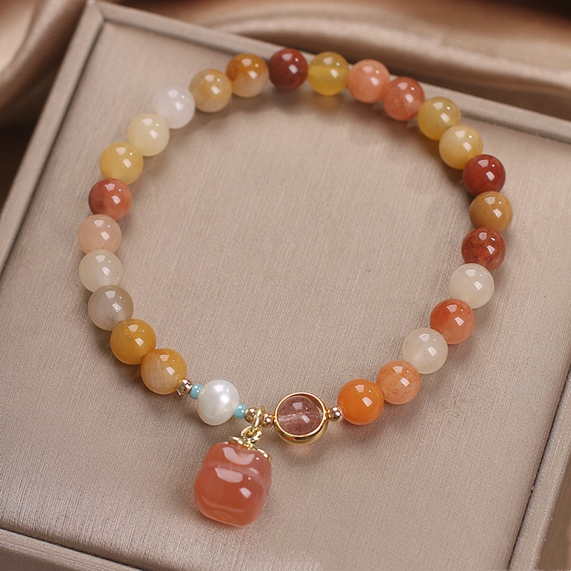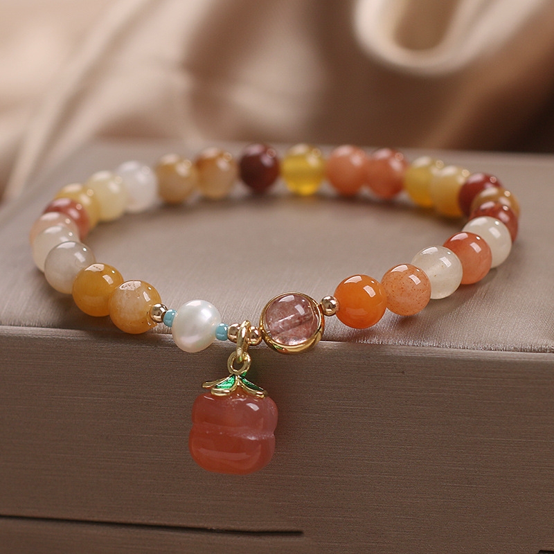 Natural Jinsi Jade Agate Persimmon Pendant Bracelet