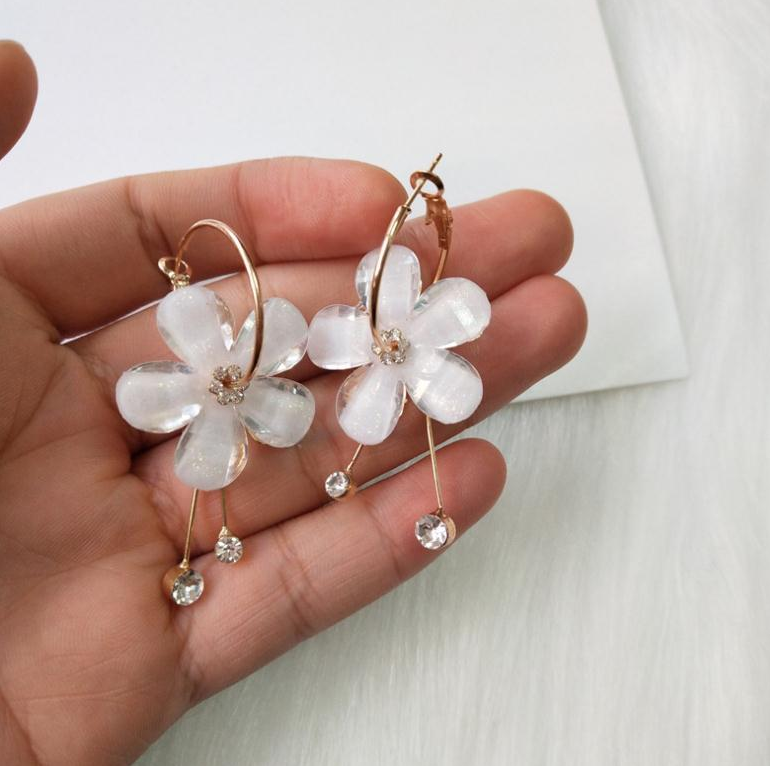 Material: Alloy + AcrylicEarring length: 5.7 cmFlower diameter: 2.9 cm