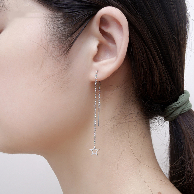 Material: stainless steelShape: long chain earringsTreatment process: polishingColor: steel, goldPopular element: hollow