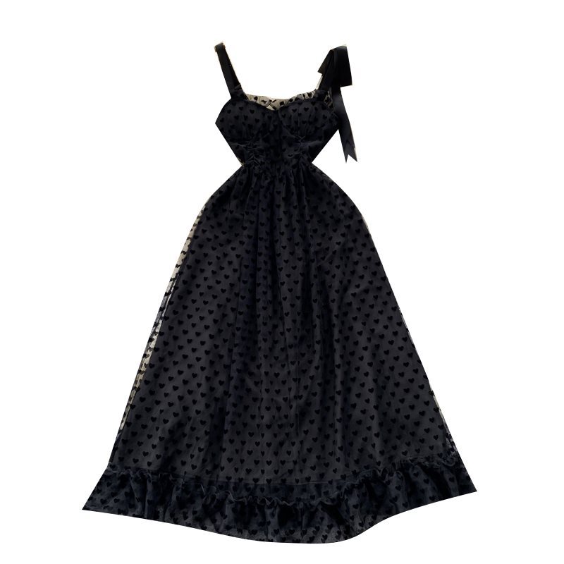 Product information: Color: Black Waist type: high waist Size: S ,M,L,XL,2XL Style type: fresh and sweet Combination form: Single piece Skirt length: long skirt Style: Sling Material: Polyester