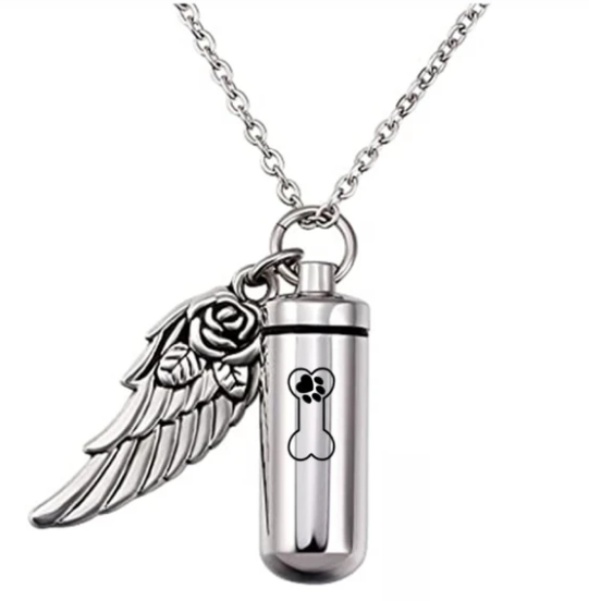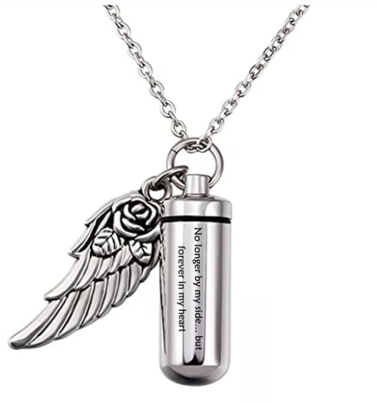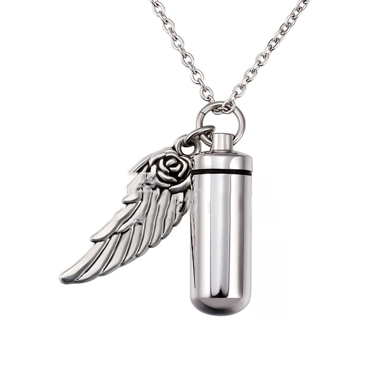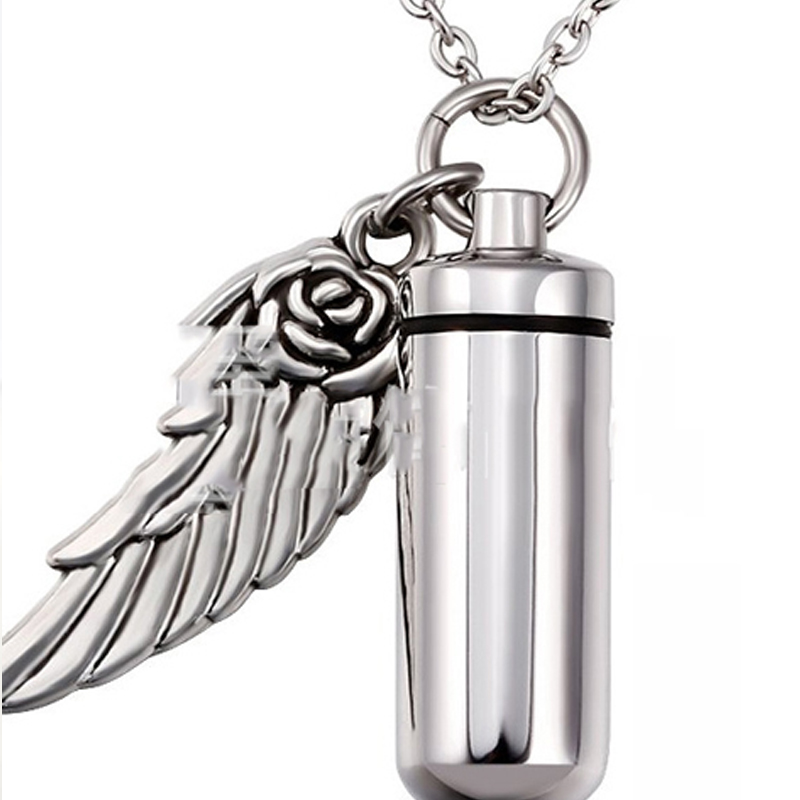 Cylindrical urn wing pendant, perfume bottle jewelry