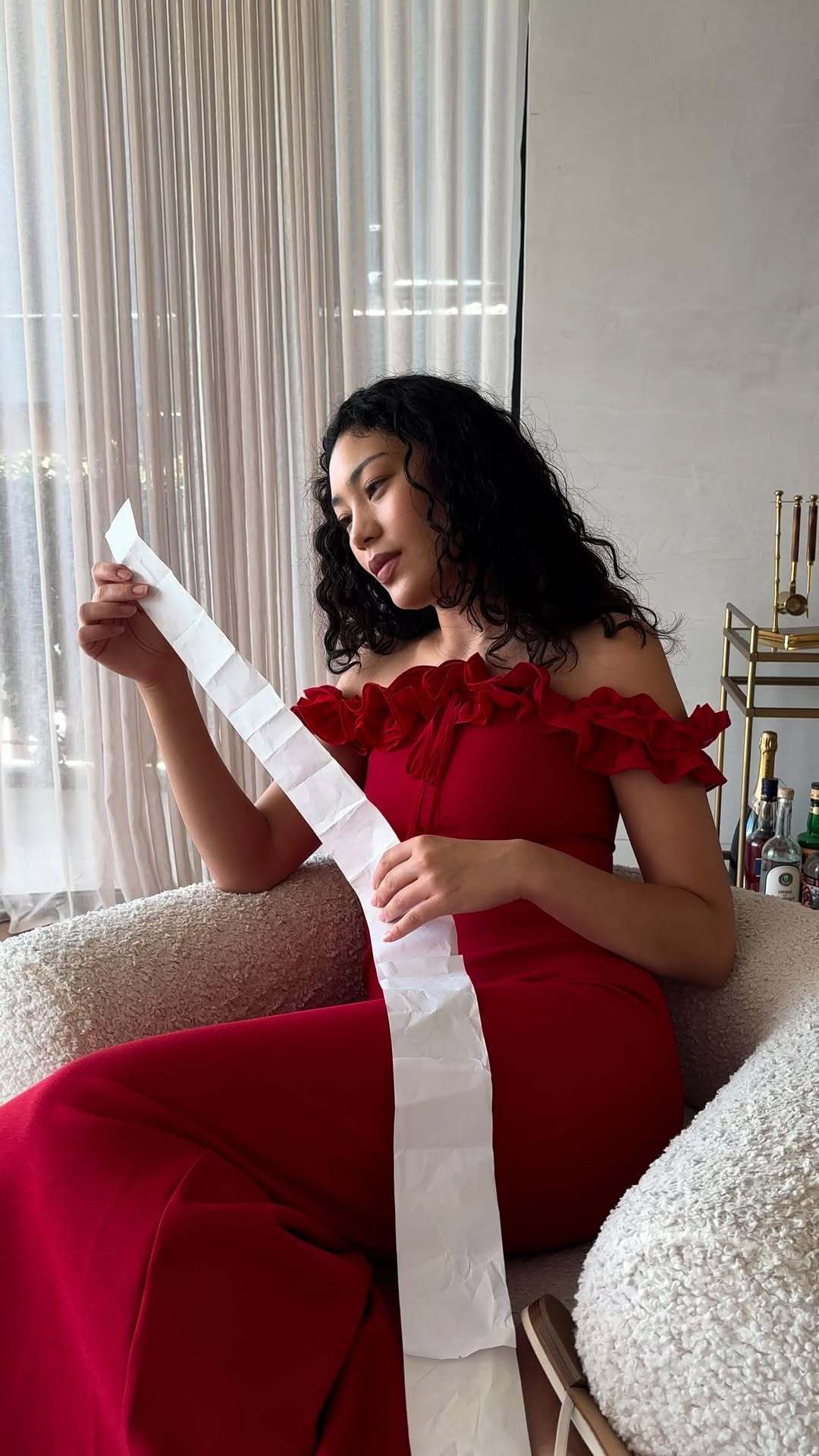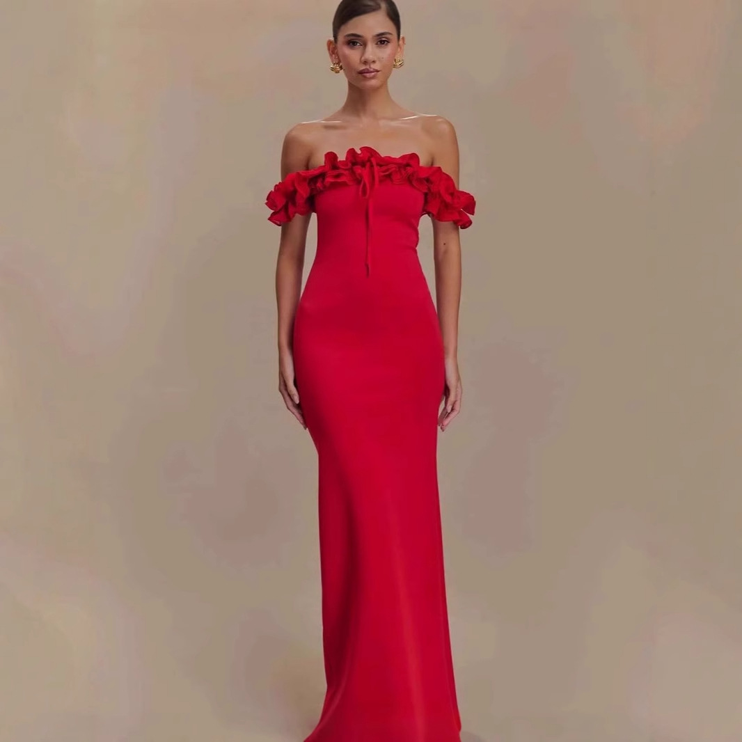 Product information:Fabric name: PolyesterApplicable scenario: company annual meetingColor: redWaist type: high waistSize: XS,S,M,LSkirt length: long skirtSleeve length: sleevelessPopular element: fold