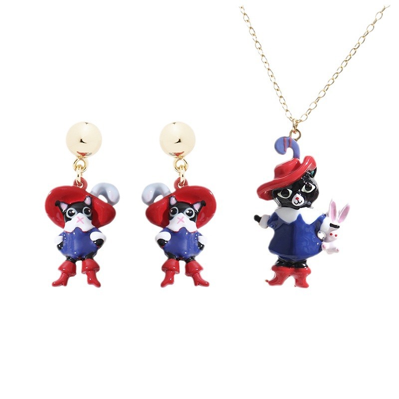Product information:Color: ear studs, ear clips, necklace Applicable population: Female Material: enamel Modeling: cartoon characters Size: ear studs about: 2.95cm * 1.25cm