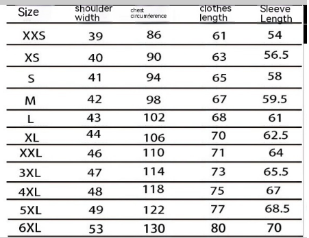 Size: 2XS,XS,S,M,L,XL,2XL,3XL,4XL,5XL,6XL