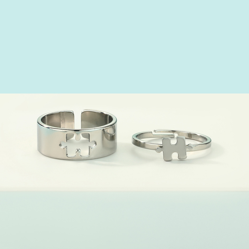 Silver Puzzle Couple Couple Rings Stainless Steel Ring Ornament