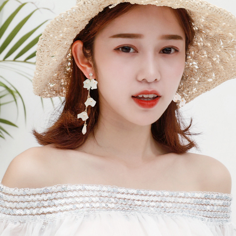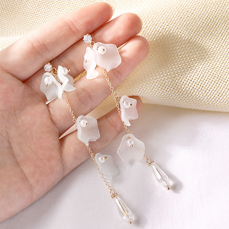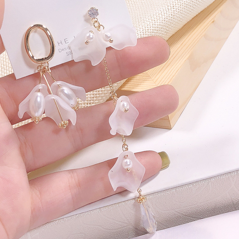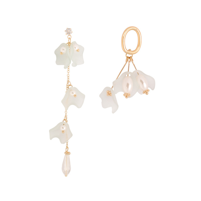 S925 silver fashion petal pearl asymmetric Earrings
