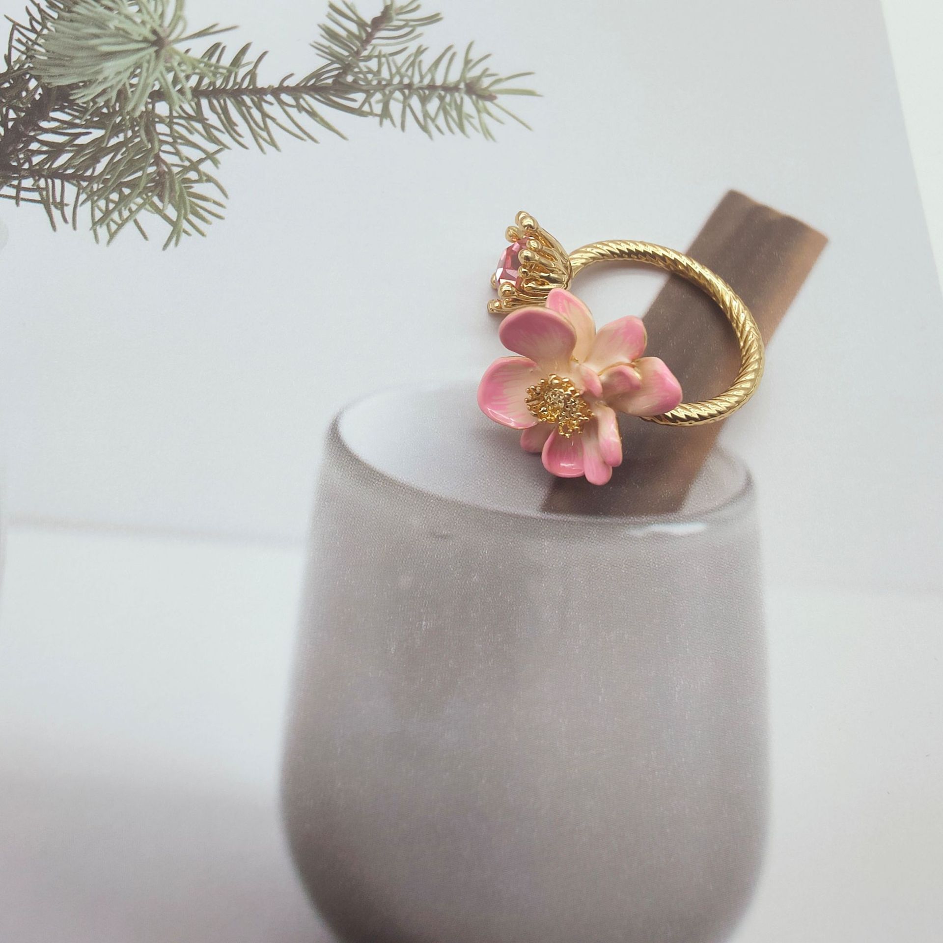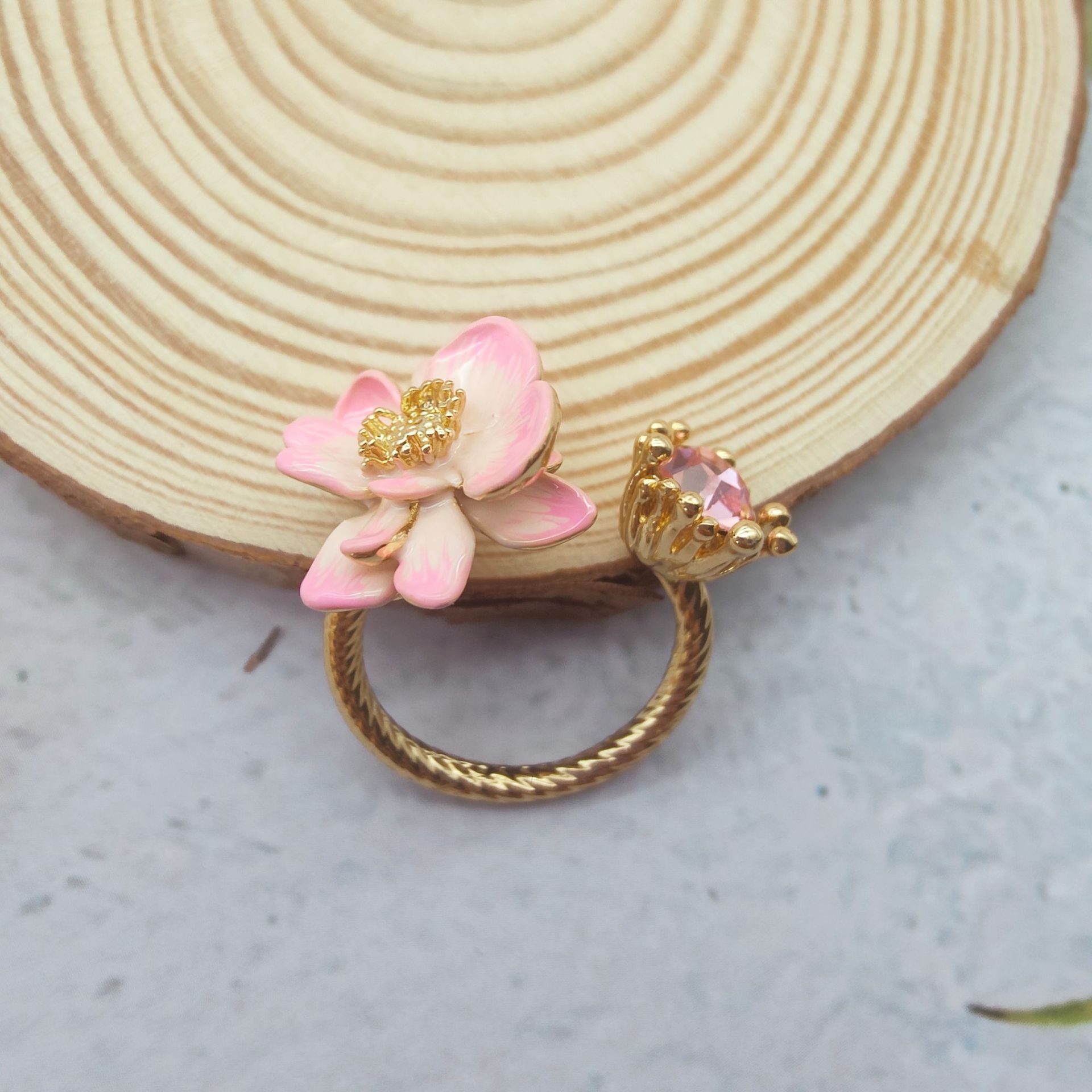 Product information:Color: ring, necklace, bracelet Applicable population: Female Material: copper plastic Shape: Flower Style: Mori style style