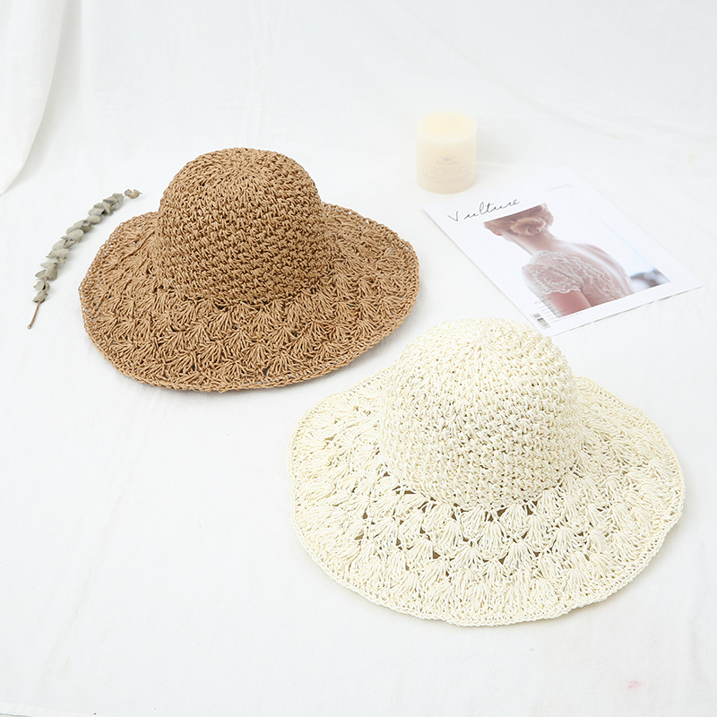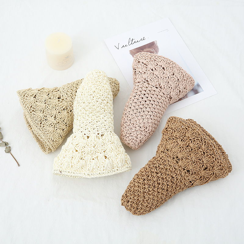 Foldable Solid Color Hand Crocheted Straw Hat Children's Autumn And Winter Sun Protection Beach Holiday Fisherman's Hat Cover