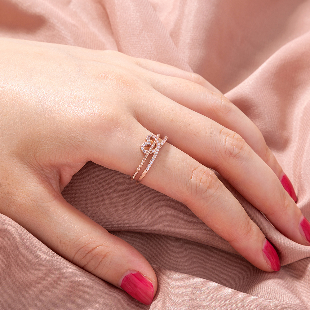 Personalized Love Heart With Double-glazed Zircon Open Adjustable Ring