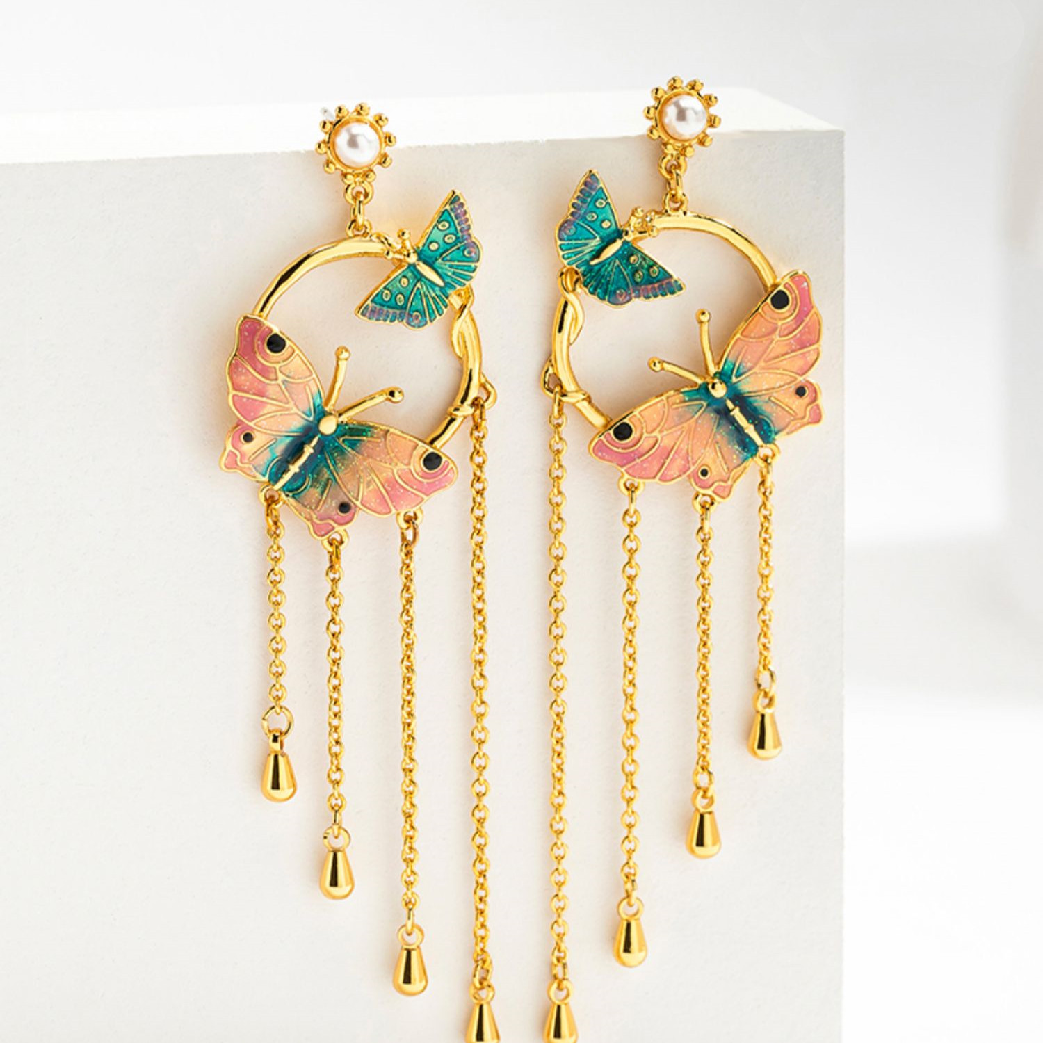 Jewelry process: 18k gold plated inlaid shell bead painting enamel process