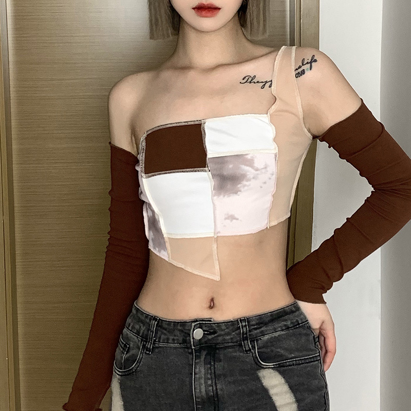 Popular elements: one shoulder, contrast color