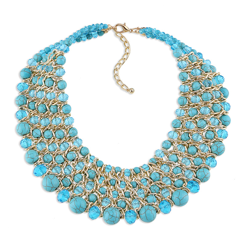 Material: crystal beads, turquoise, aluminum chain, imitation pearls, others