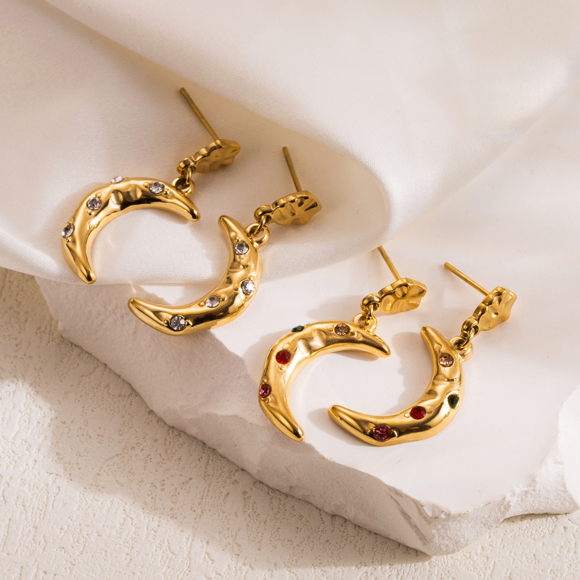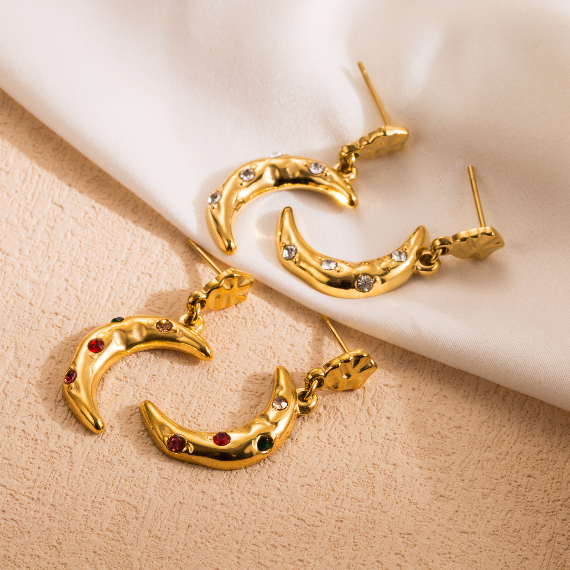 Product information:Treatment Process: Electroplating Color: gold white diamond, gold colorful crystals Applicable people: women Material: Stainless steel Shape: GeometricStyle: sweet and cool