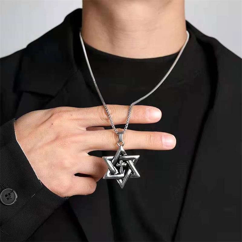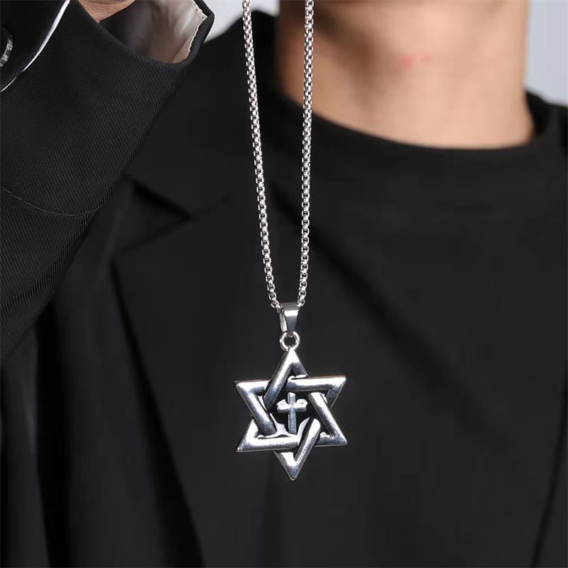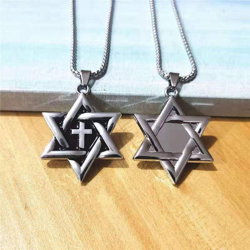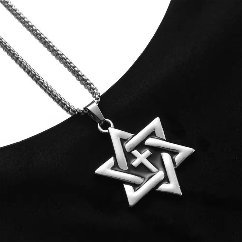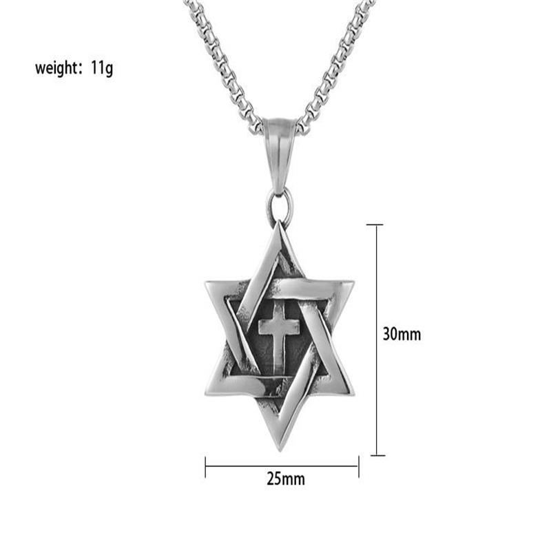 Type: pendant, pendantStyle: UnisexMaterial: titanium steelProcessing technology: inlaid silverChain style: keel chainColor: hexagram cross [70 long steel chain]