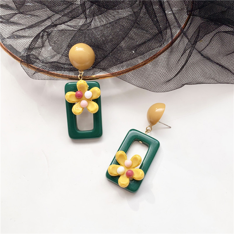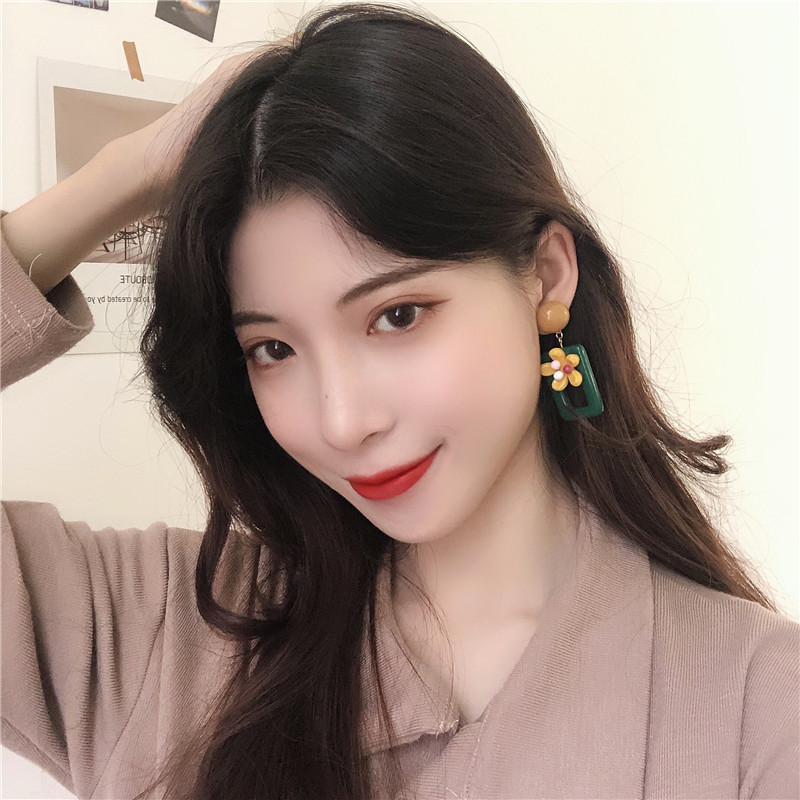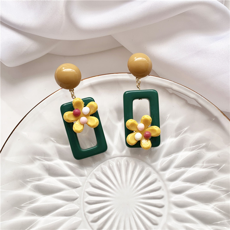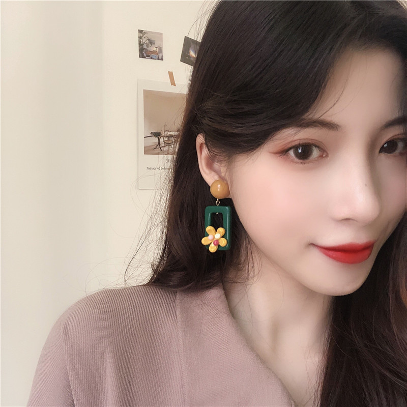 Korea Hyuna Style Cute Daisy Flower Contrast Color Stud Earrings