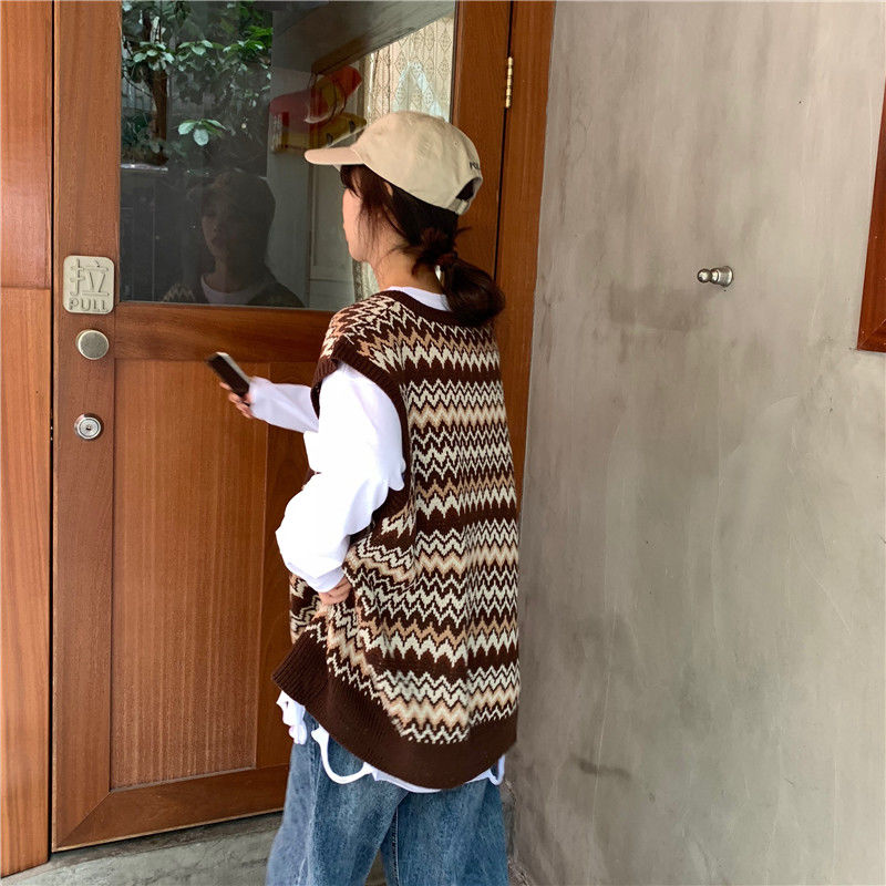 Loose sleeveless knitted sweater