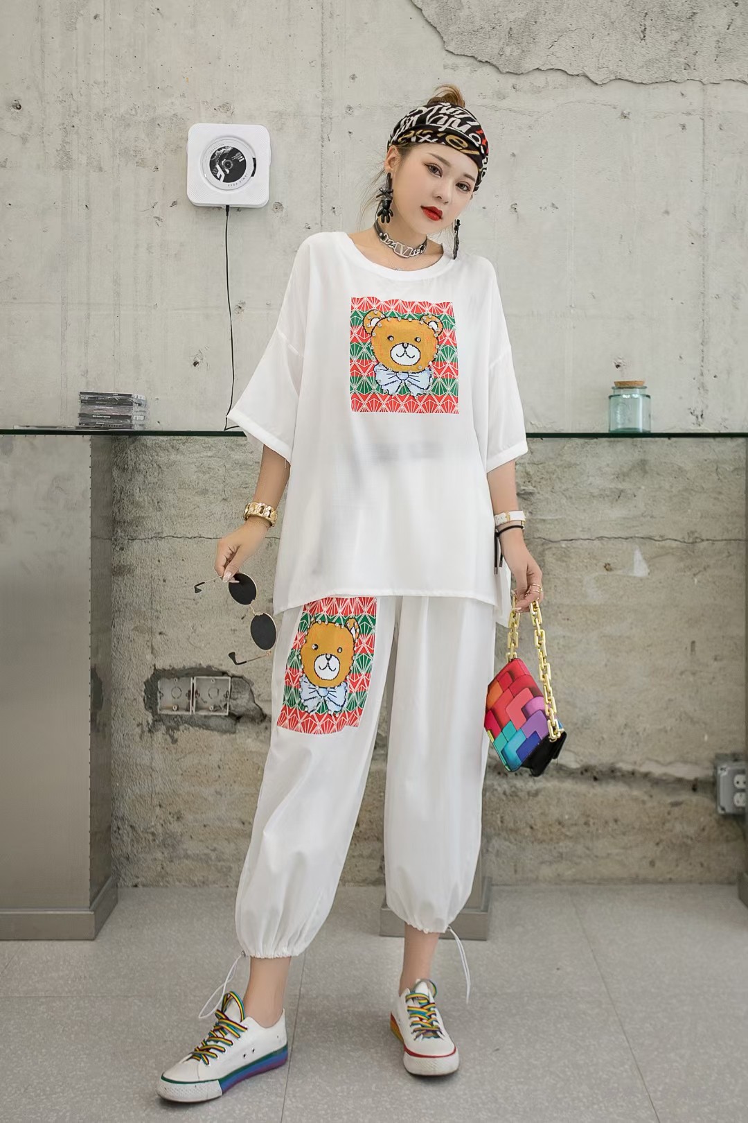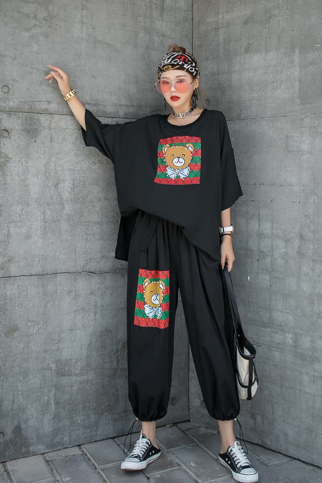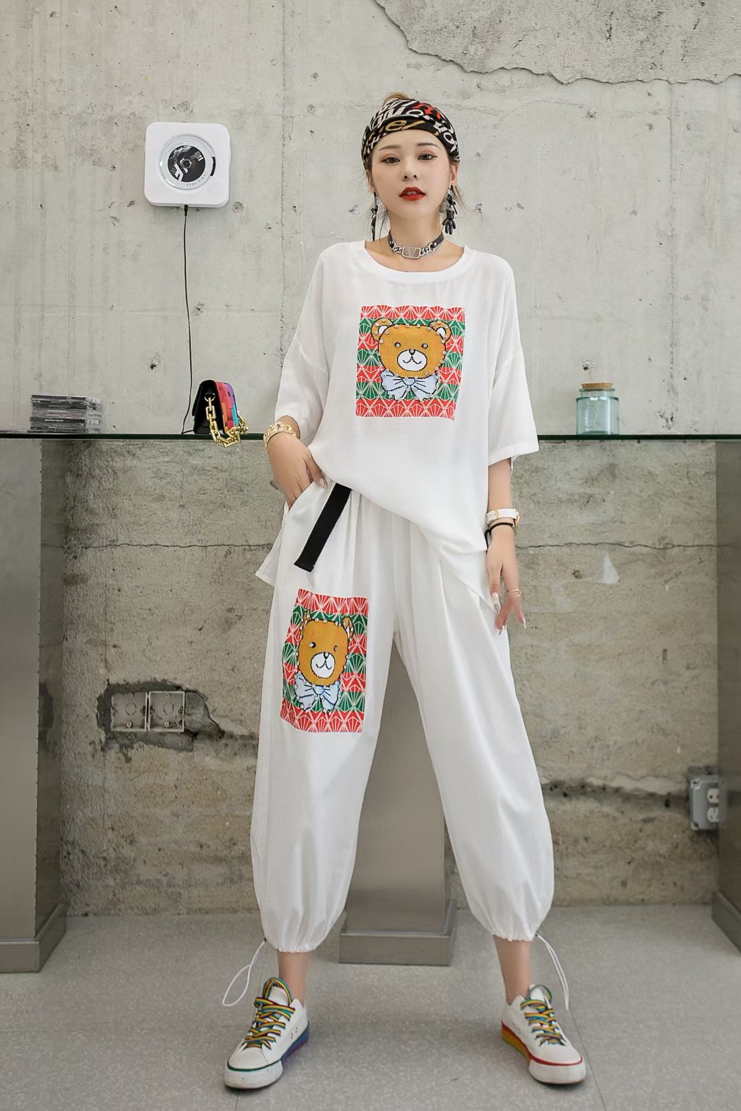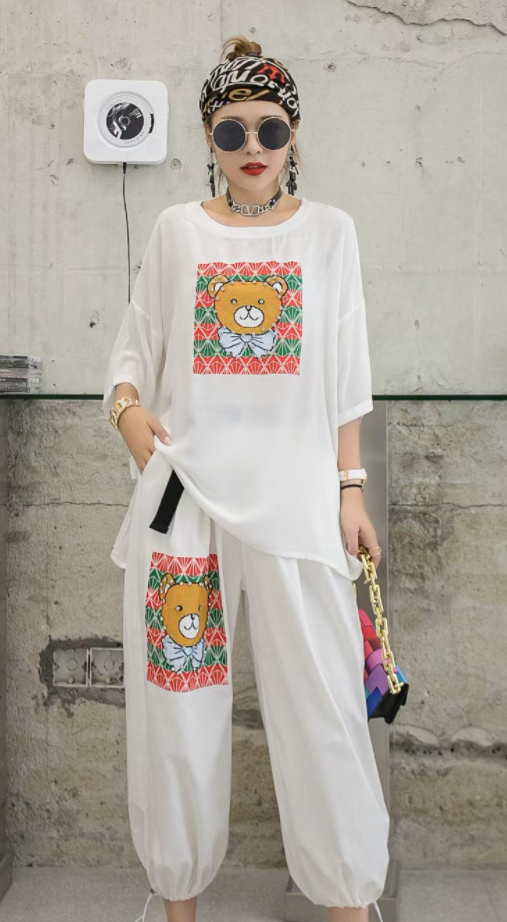 Fashion age-reducing casual T-shirt two-piece suit