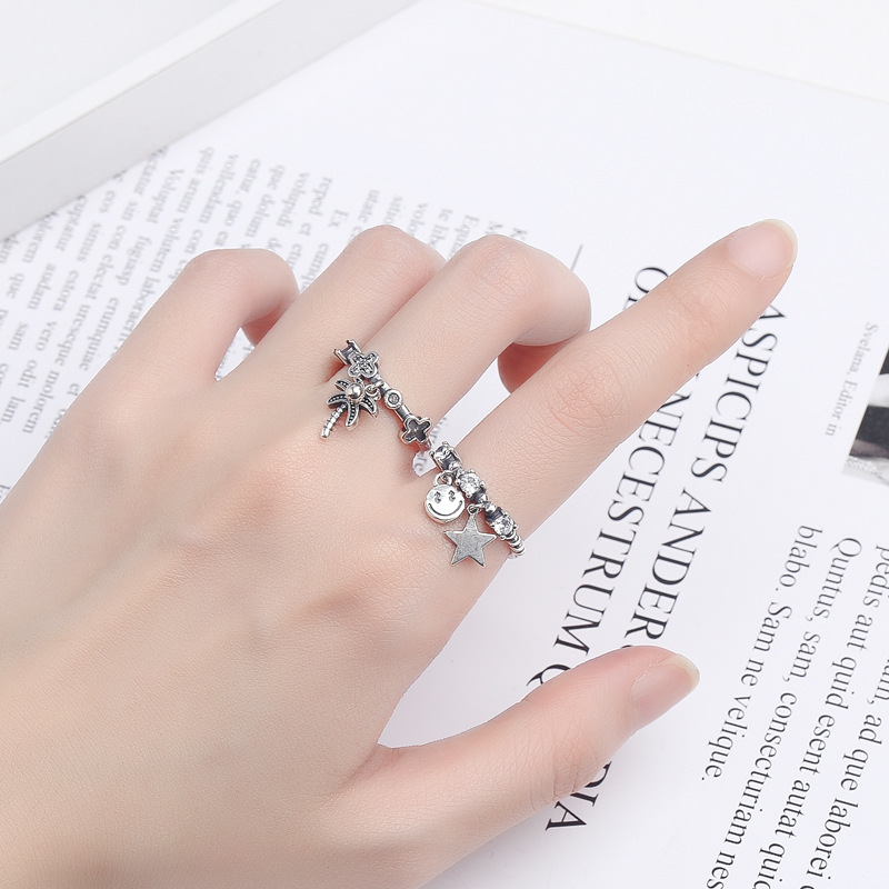 Type: RingMaterial: silverStyle: FlowersTreatment process: distressedStyle: Women'sSize: Adjustable openingSize: Ring face width Type A: 5mm Type B: 3mm