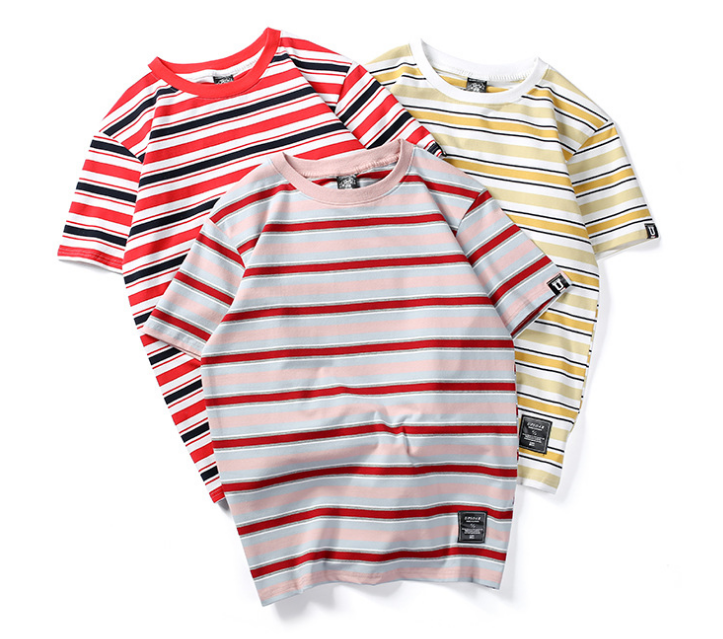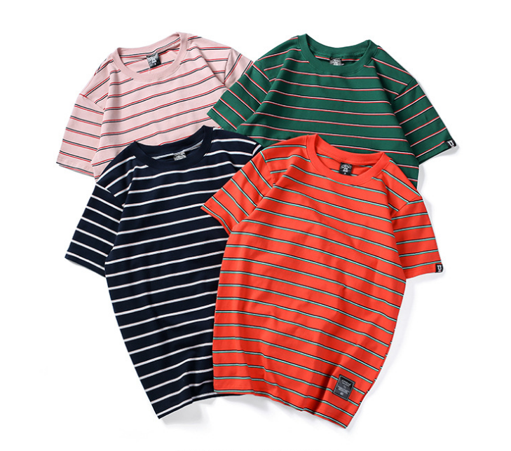Harajuku Stripes T-shirt Men's T-shirt Casual Short Sleeve Summer Hip Hop T-shirt Streetwear Casual Tops Black White Green