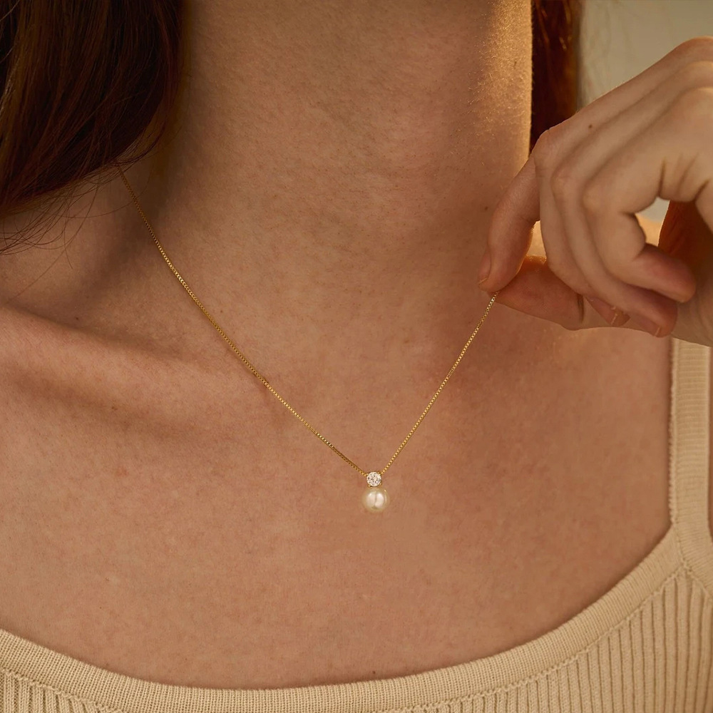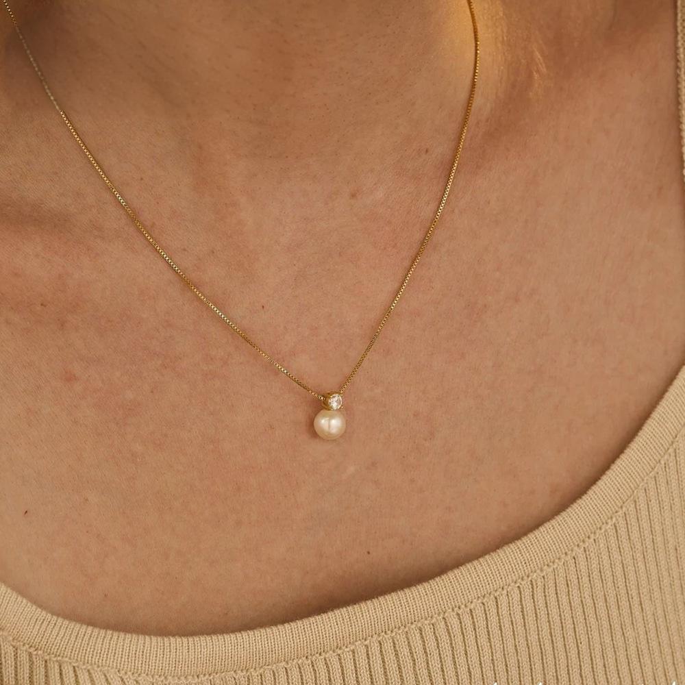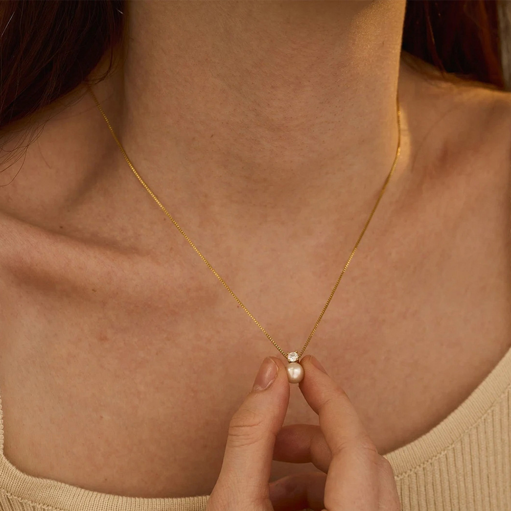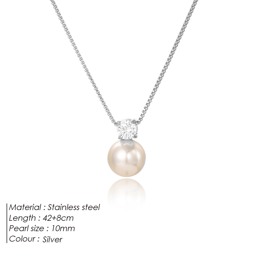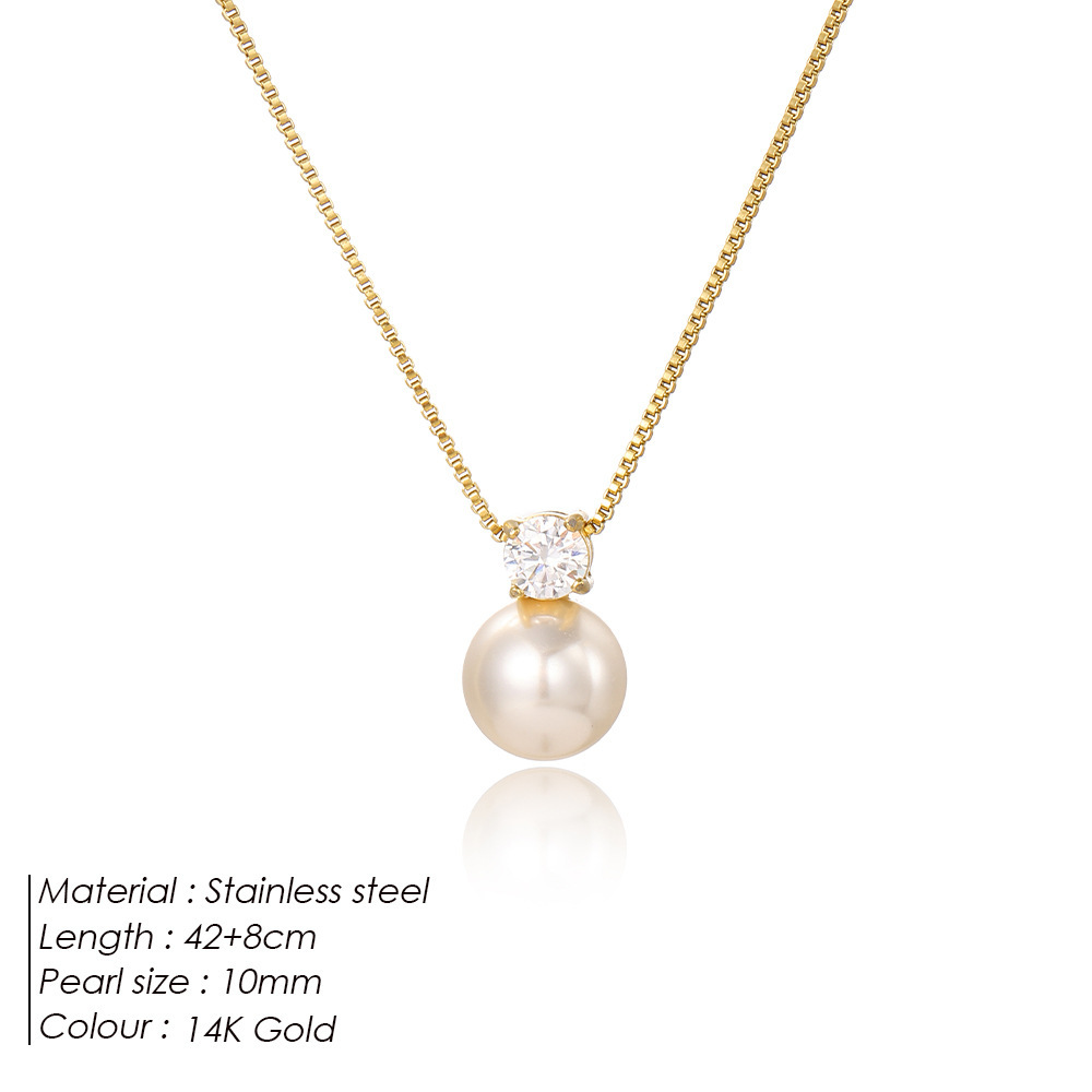 Product information:Color: gold, steelApplicable people: womenPendant material: Imitation Pearl, zirconChain style: Box chainMaterial: Stainless steelPopular elements: PearlStyle: New Chinese style