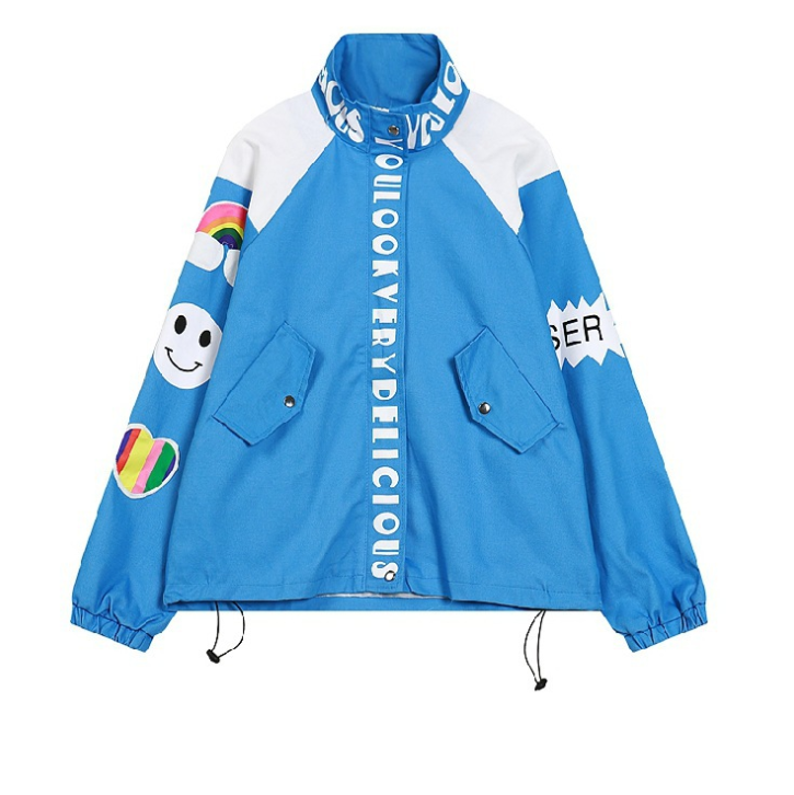 Spring New Harajuku Style Children's Rainbow Stand Collar Loose Baseball Uniform Jacket Jacket Female WT615