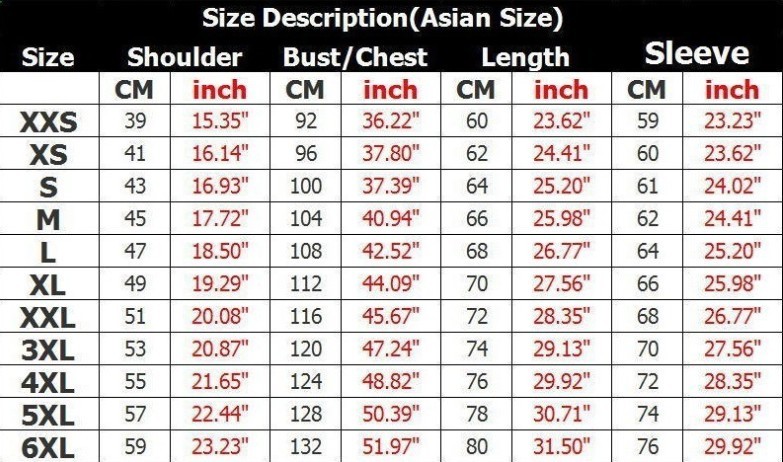 Note: 1. Asian sizes are 1 to 2 sizes smaller than European and American people. Choose the larger size if your size between two sizes. Please allow 2-3cm differences due to manual measurement. 2. Please check the size chart carefully before you buy the item, if you don't know how to choose size, please contact our customer service. 3.As you know, the different computers display colors differently, the color of the actual item may vary slightly from the following images.