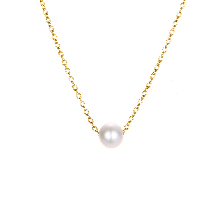 [Name] Simple pearl pendant female stainless steel gold-plated necklace clavicle chain[Material] stainless steel pearl[Perimeter] 38 + 5CM[Color] Gold Steel Rose Gold