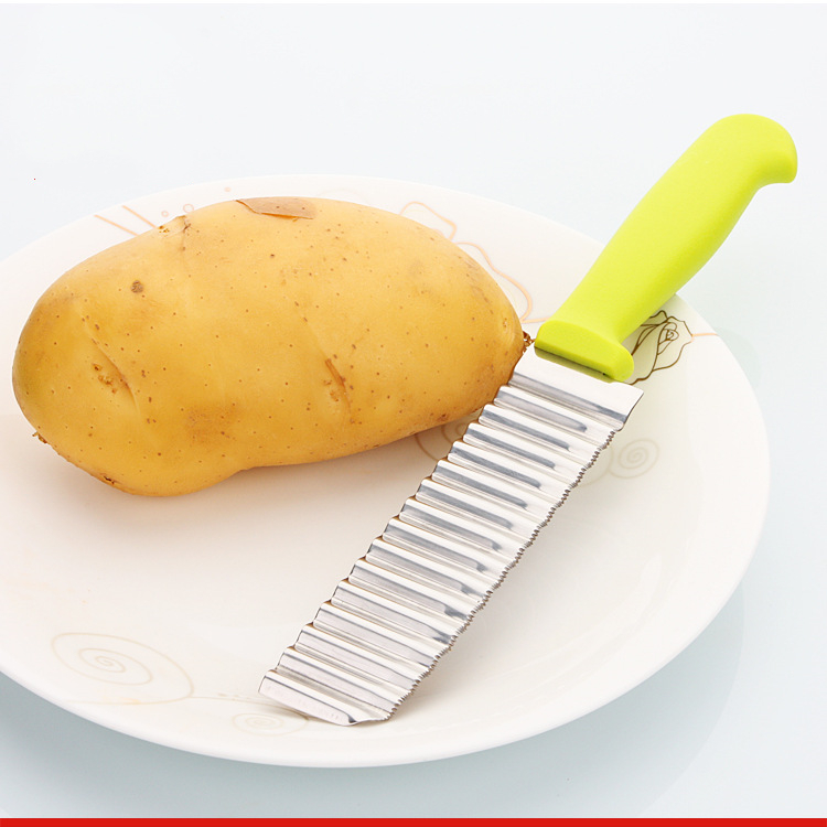 Product main material 430 stainless steelHandle PP plasticProcess surface polishingGreen colorProduct attributes are used to cut potato pieces, various melon cut strips